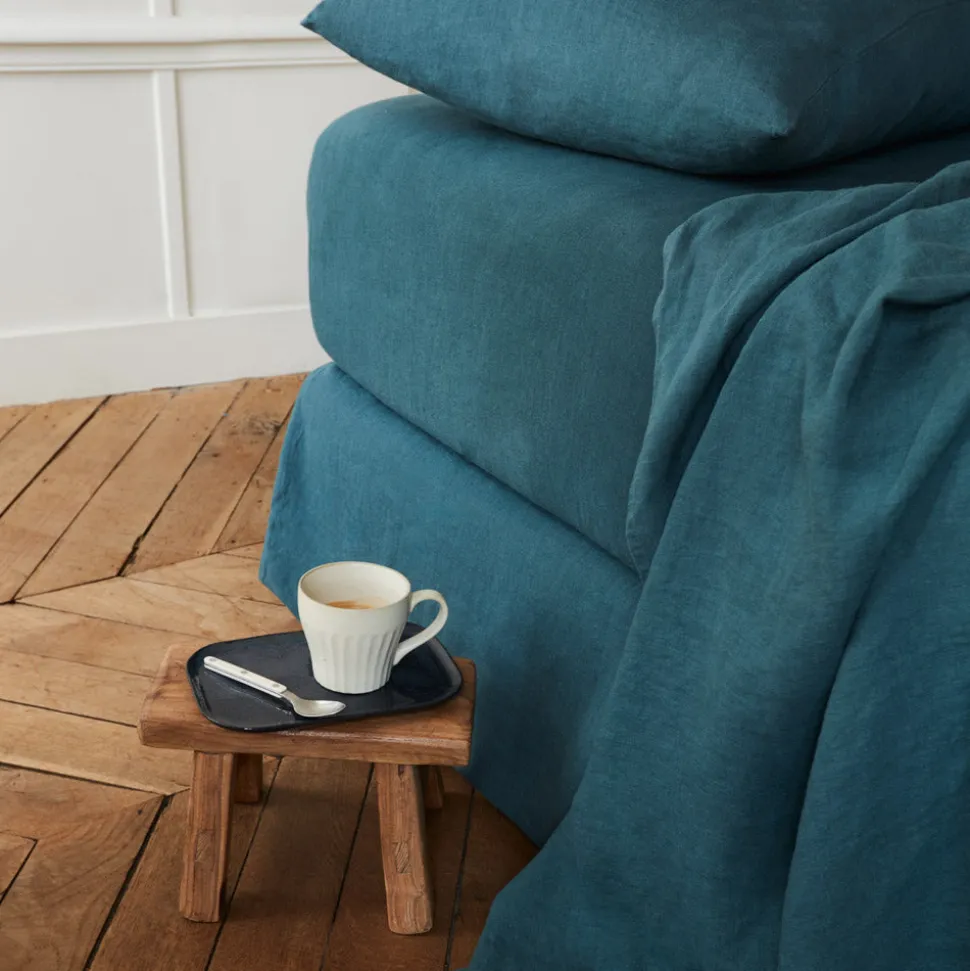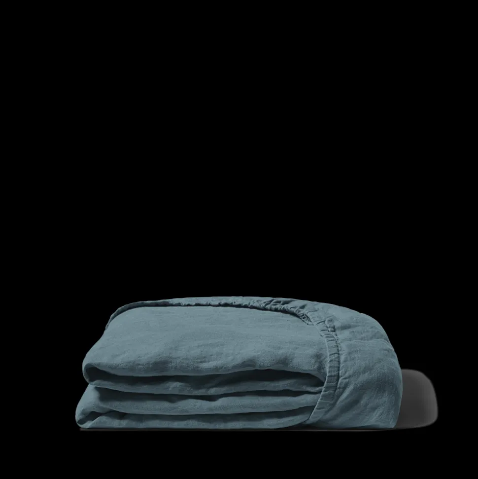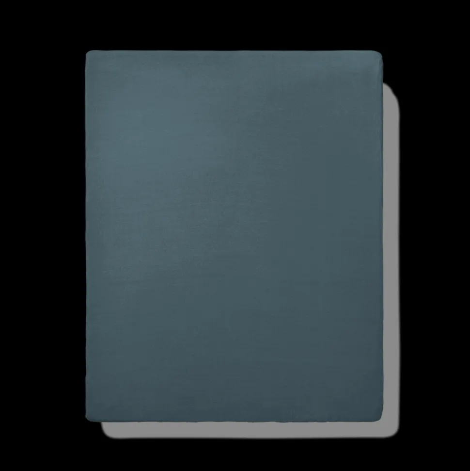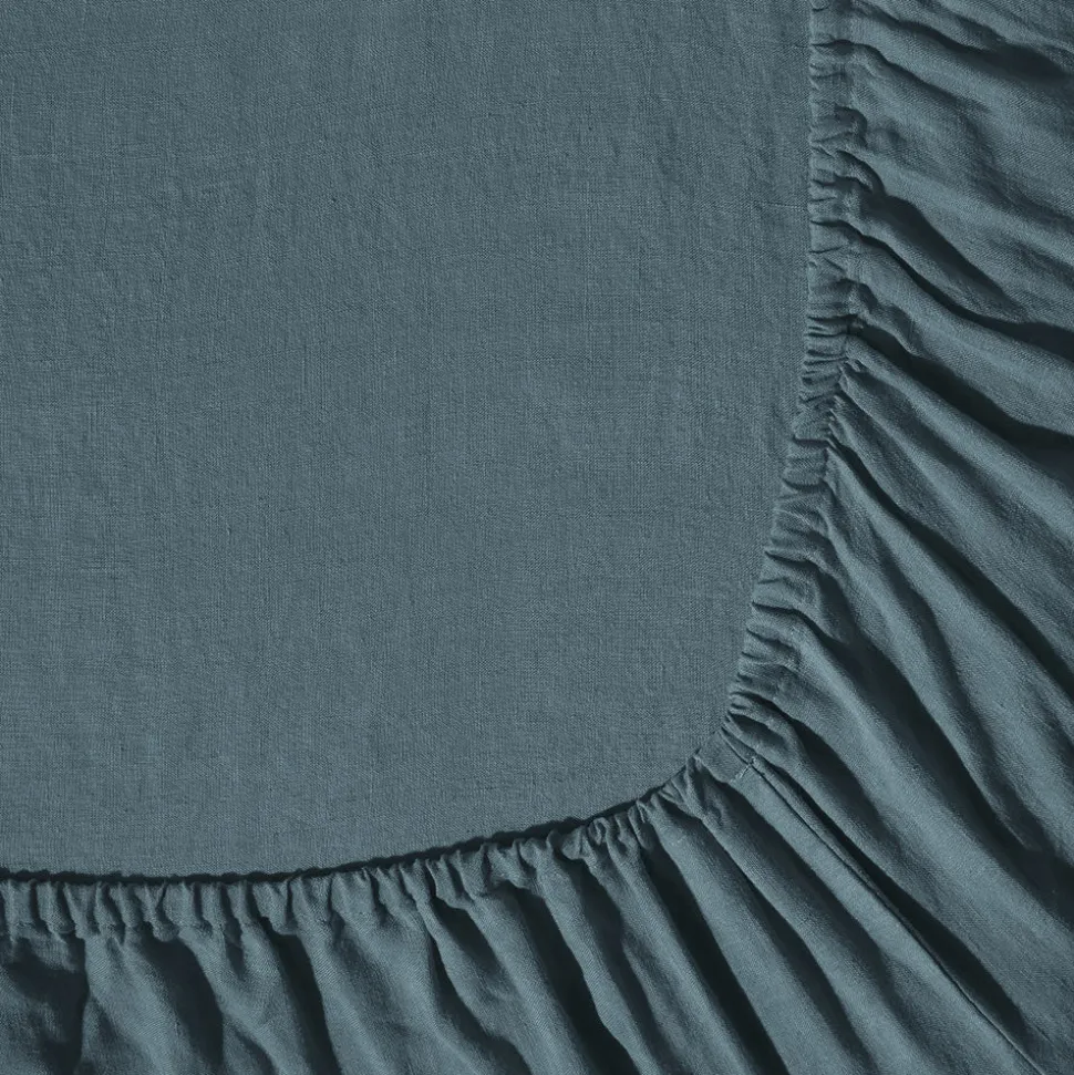 200 LINTEX Draps-housse-Drap-housse en lin lavé – Bleu Pétrole