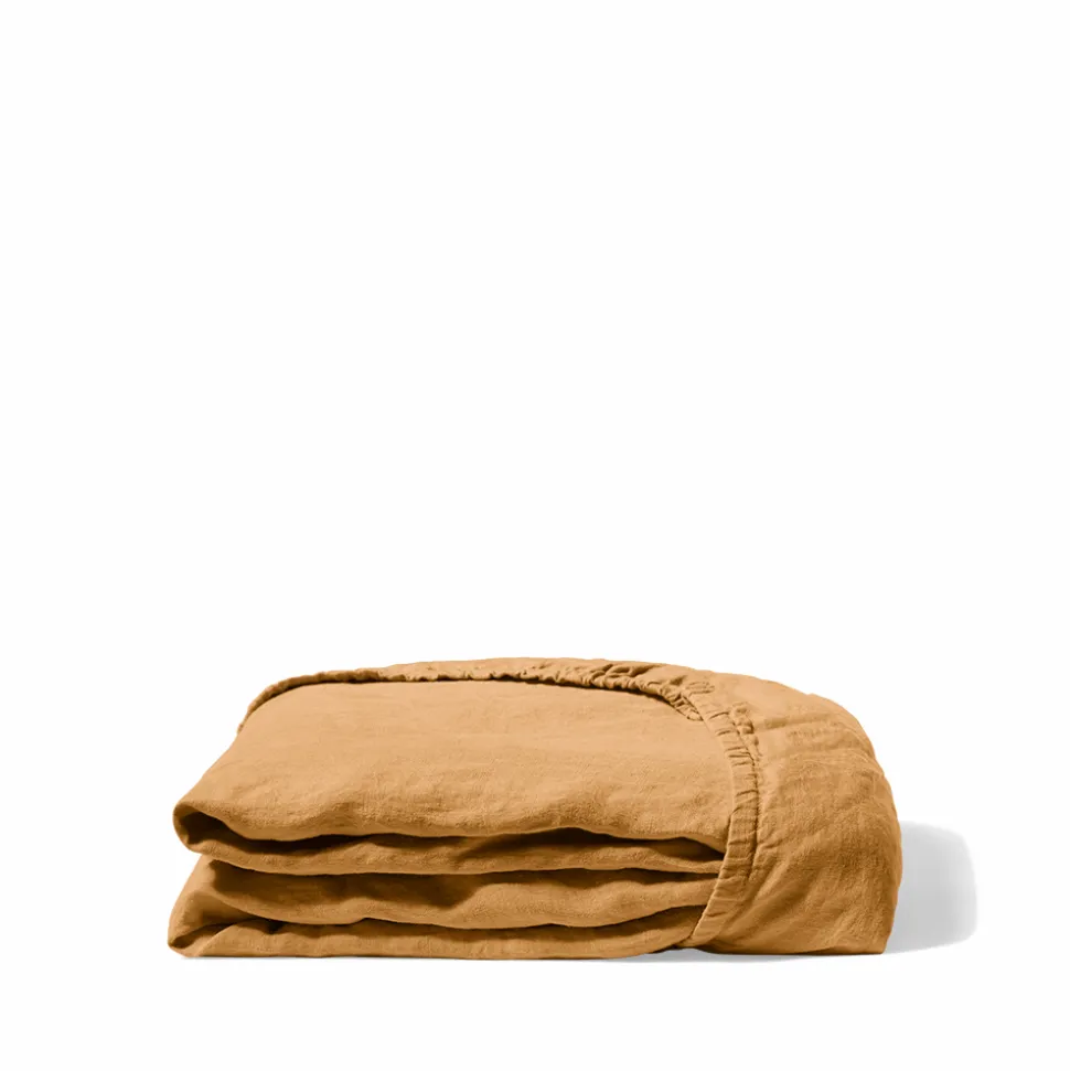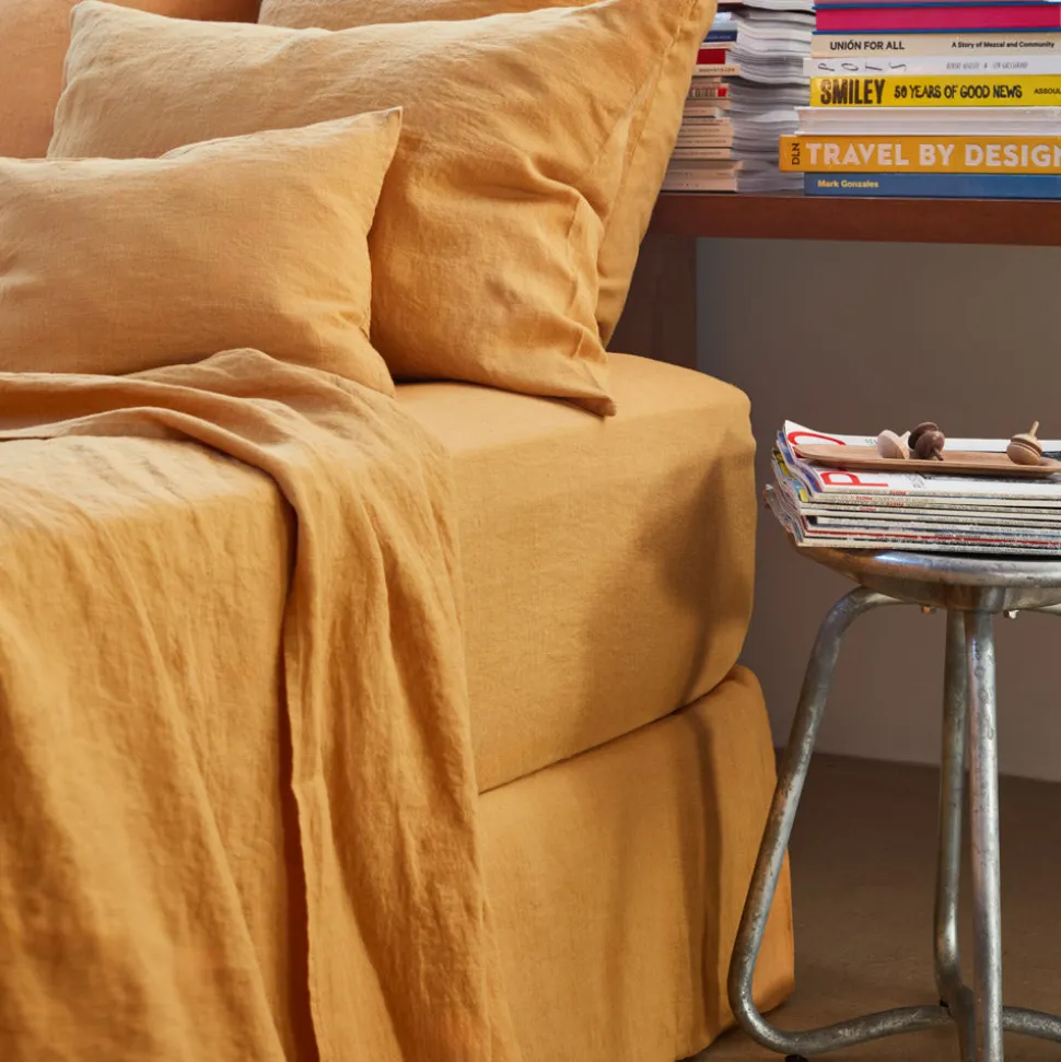 200 LINTEX Draps-housse-Drap-housse en lin lavé – Jaune Asahi