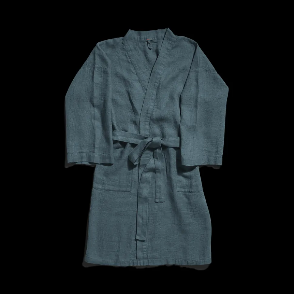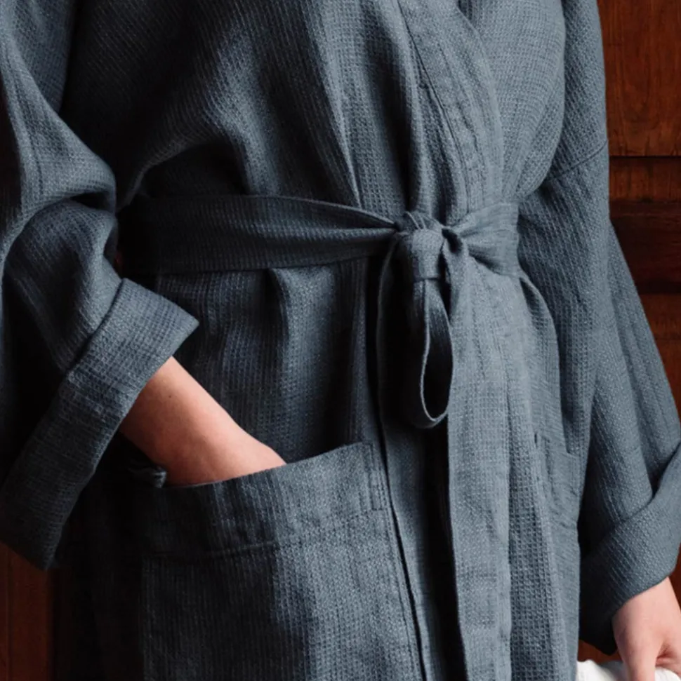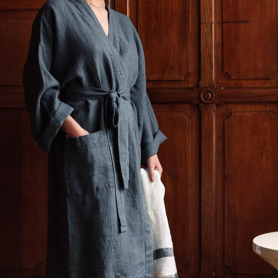 200 LINTEX Peignoirs-Peignoir en lin – Nid d'abeille – Bleu Pétrole