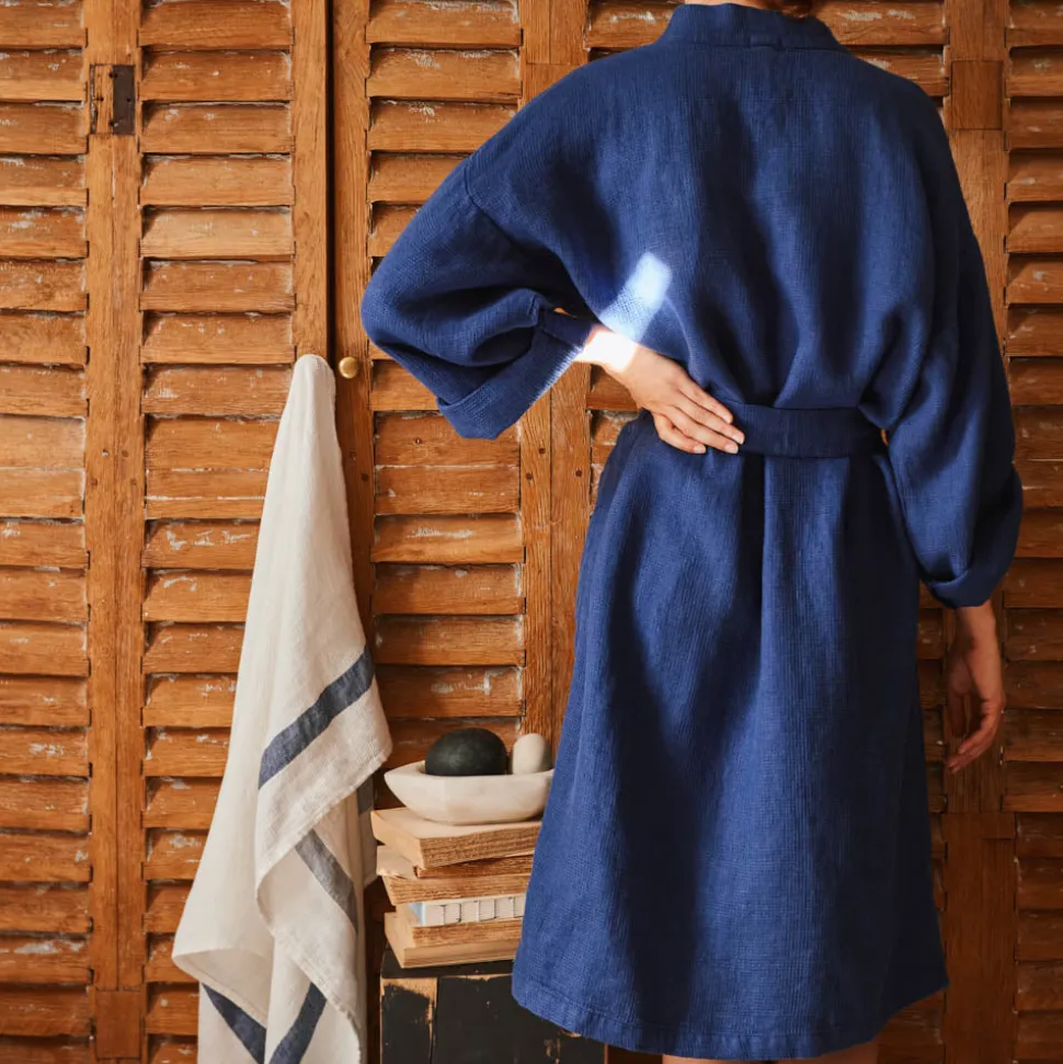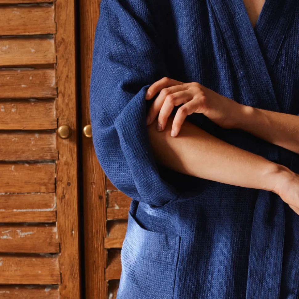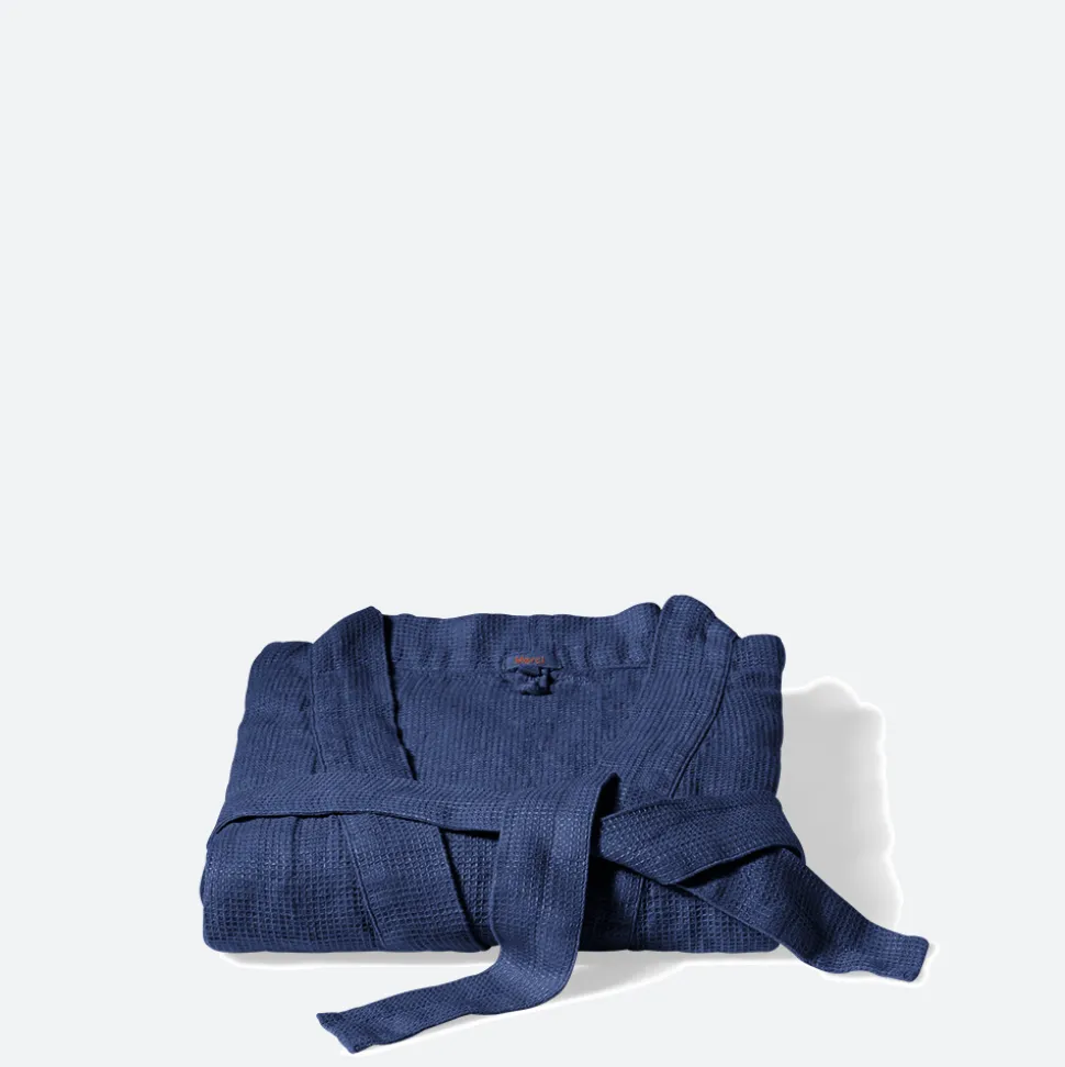200 LINTEX Peignoirs-Peignoir en lin – Nid d'abeille – Bleu Shibori