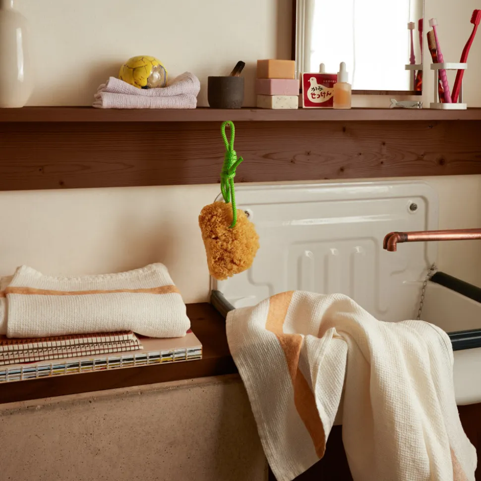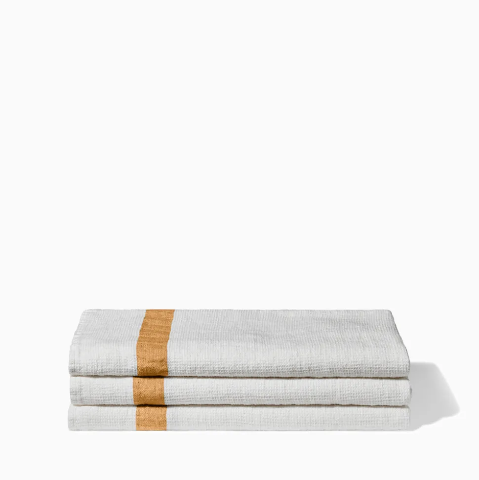 200 LINTEX Salle De Bain : Esprit Japonais|Serviettes De Table-Serviette de bain en lin – Nid d'abeille – Bande Jaune Asahi