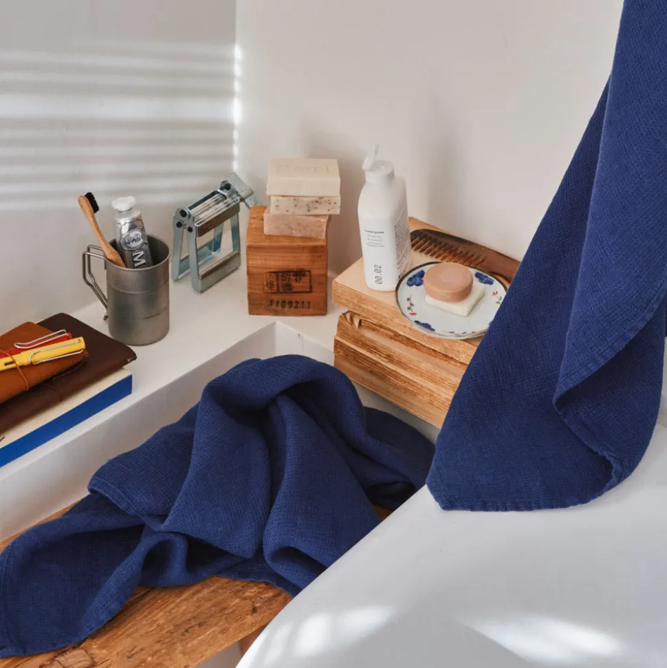 200 LINTEX Salle De Bain : Esprit Japonais|Serviettes De Table-Serviette de bain en lin – Nid d'abeille – Bleu Shibori