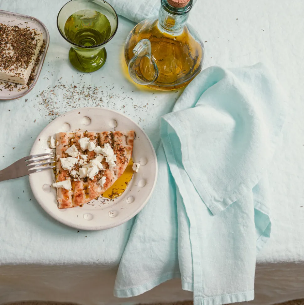 200 LINTEX Serviettes De Table-Serviette de table en lin lavé – Bleu Antiparos