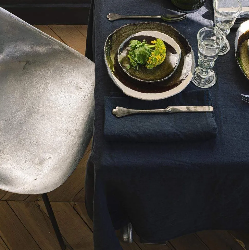 200 LINTEX Serviettes De Table-Serviette de table en lin lavé – Bleu Encre