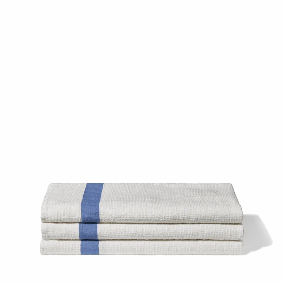 200 LINTEX Serviettes De Table|Serviettes De Bain En Lin-Serviette de bain en lin – Nid d'abeille – Bande Bleu Paros