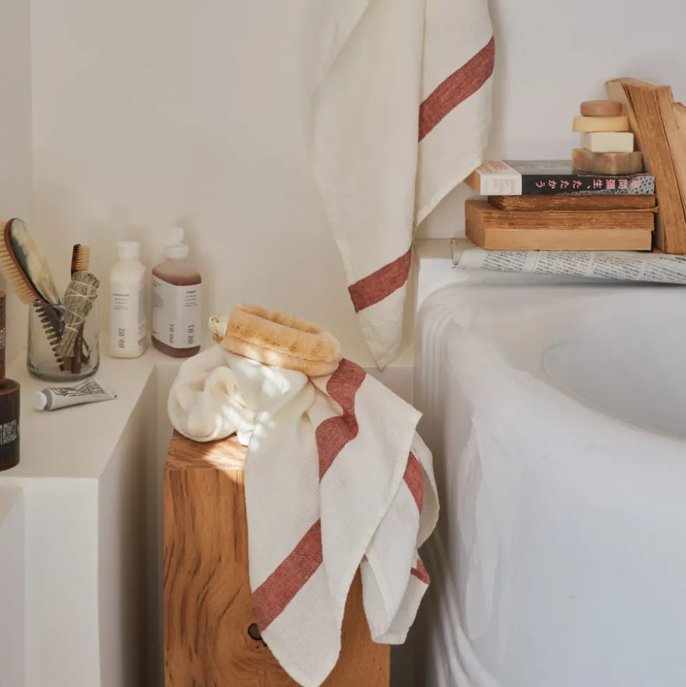 200 LINTEX Serviettes De Table|Serviettes De Bain En Lin-Serviette de bain en lin – Nid d'abeille – Bande Rouge Urushi