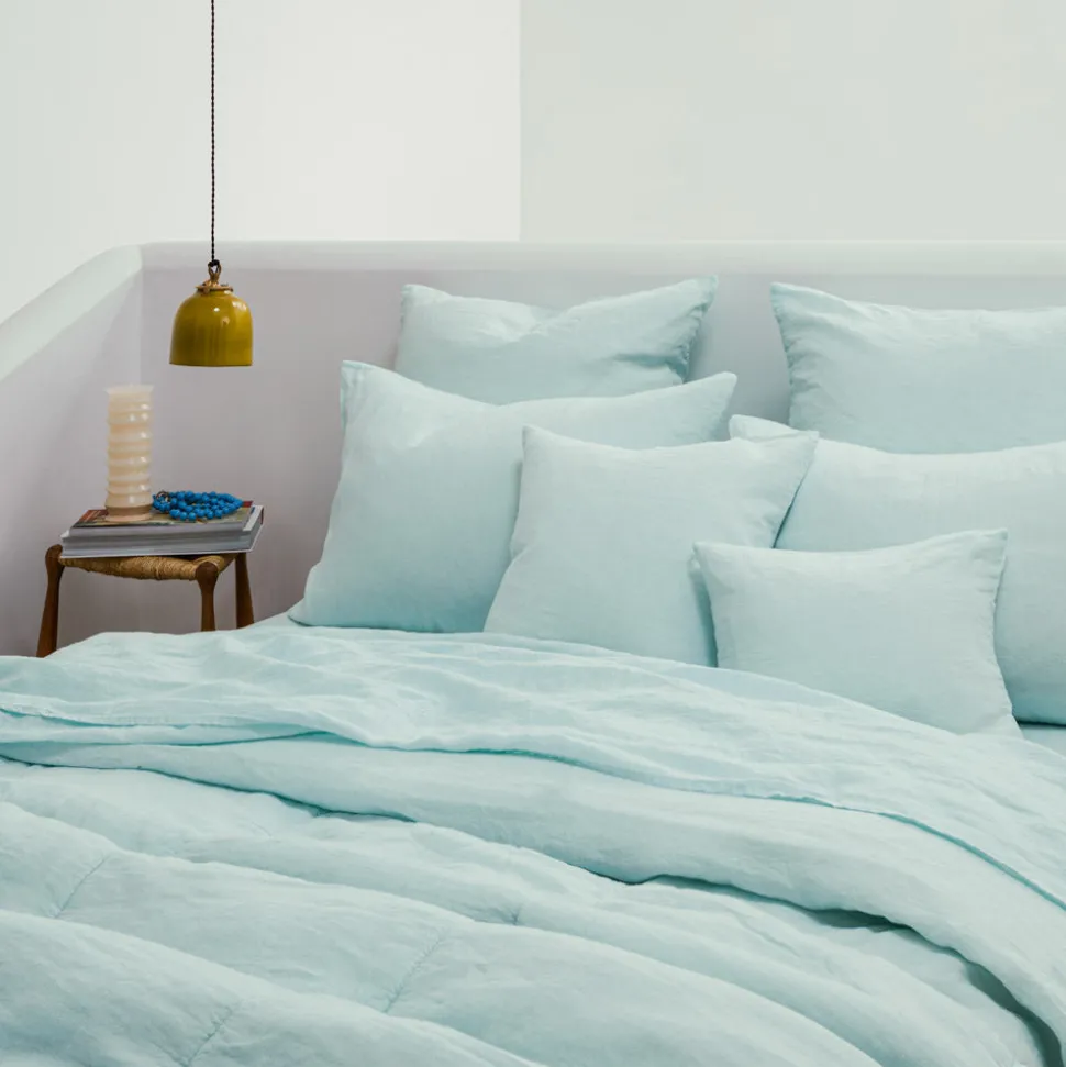 200 LINTEX Taies D’oreiller-Taie d'oreiller en lin lavé – Bleu Antiparos