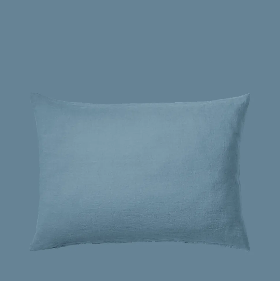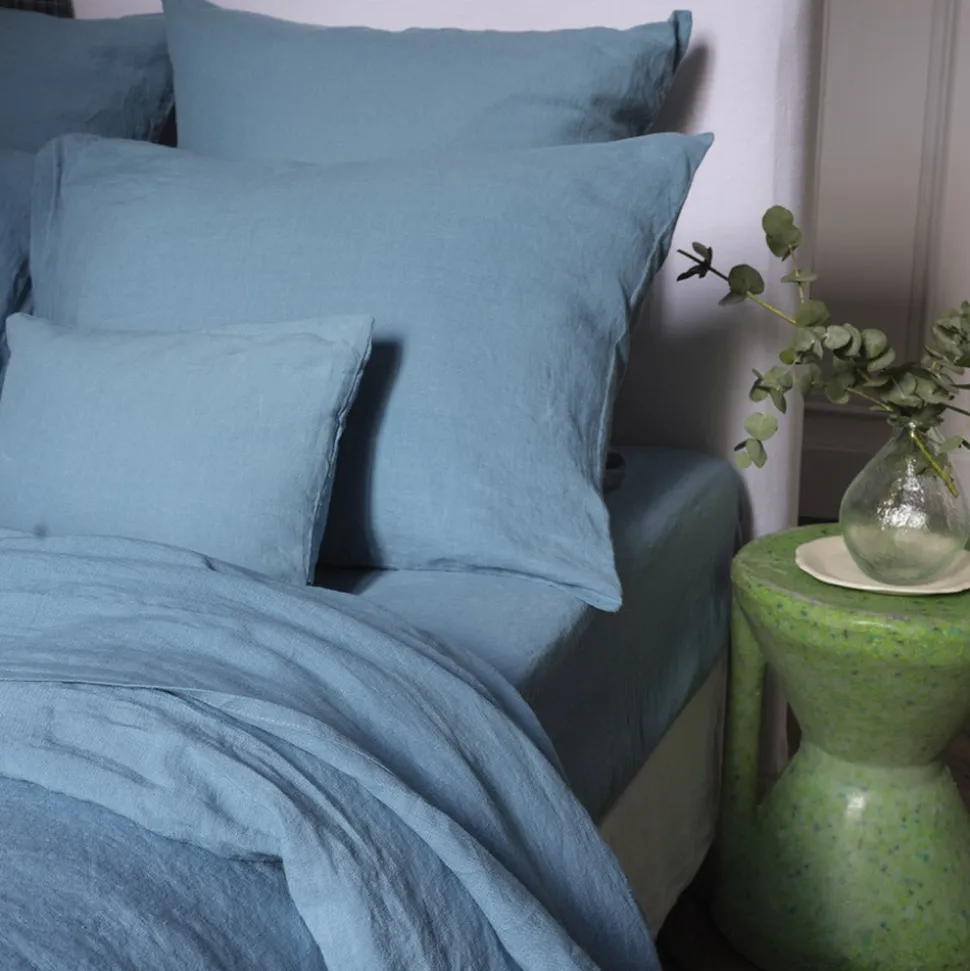 200 LINTEX Taies D’oreiller-Taie d'oreiller en lin lavé – Bleu Azur
