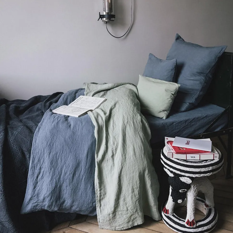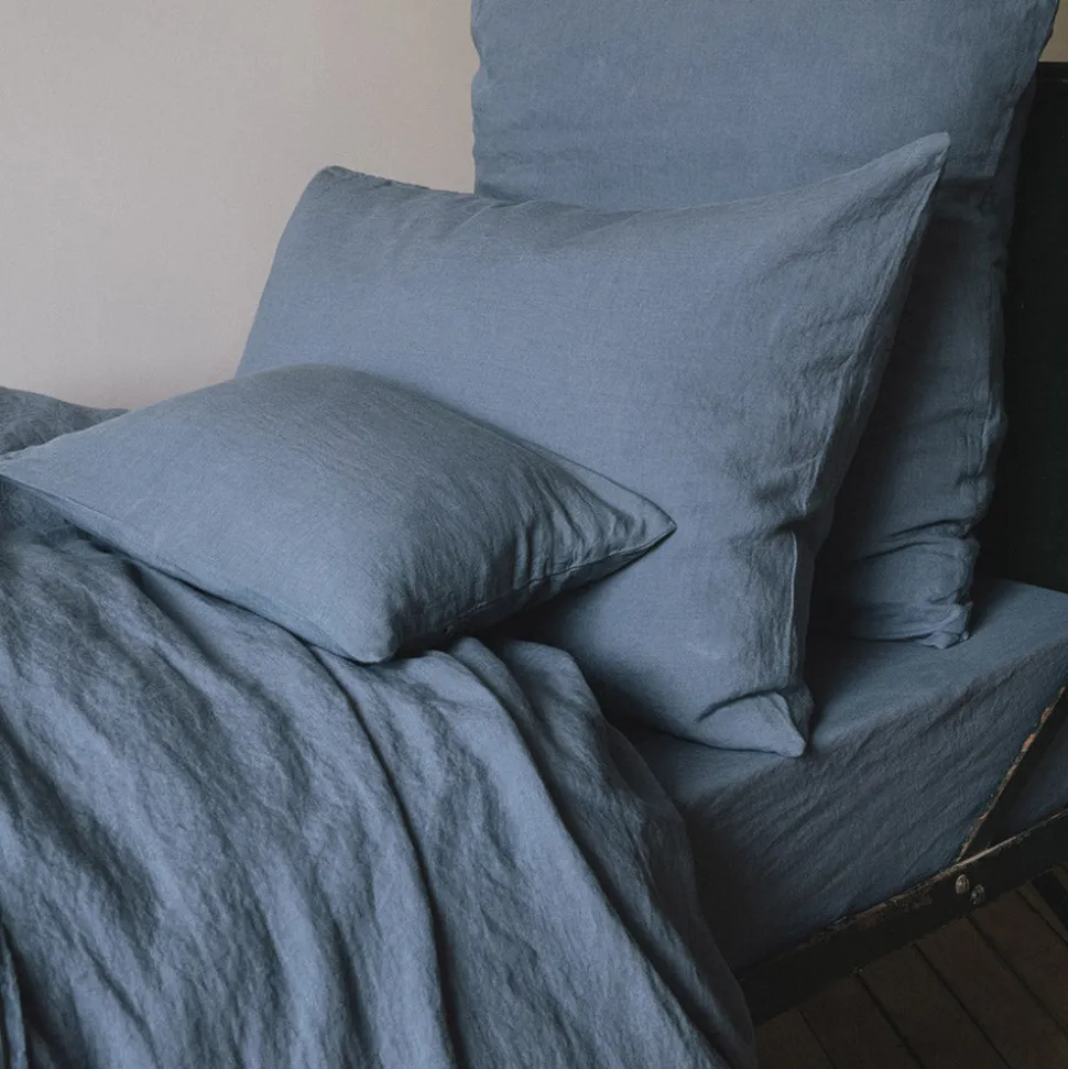 200 LINTEX Taies D’oreiller-Taie d'oreiller en lin lavé – Bleu de Nîmes