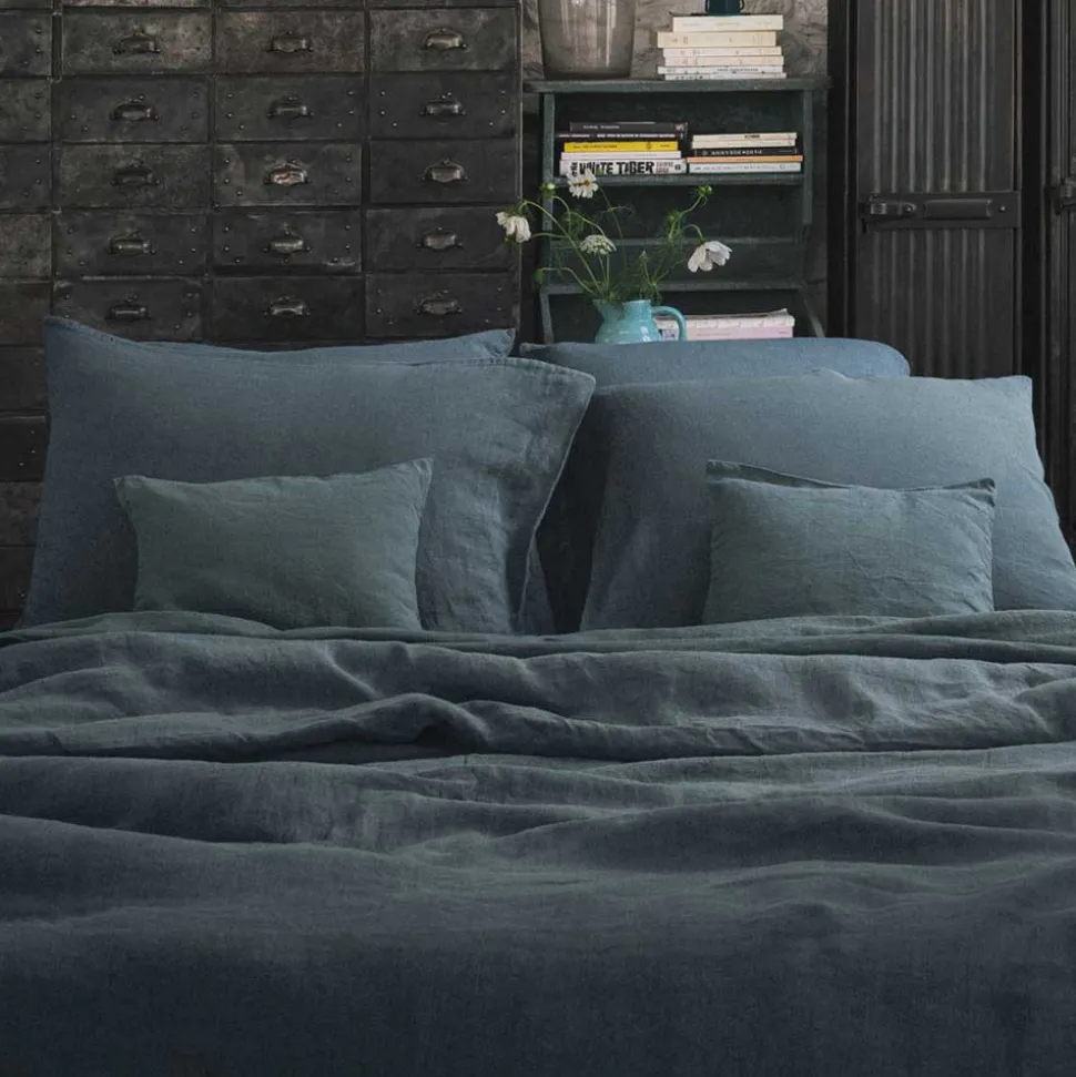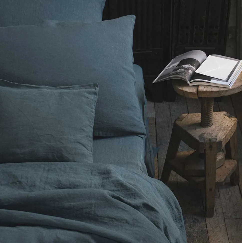 200 LINTEX Taies D’oreiller-Taie d'oreiller en lin lavé – Bleu Pétrole