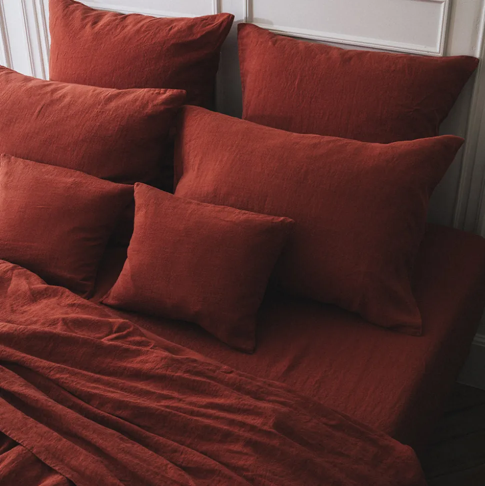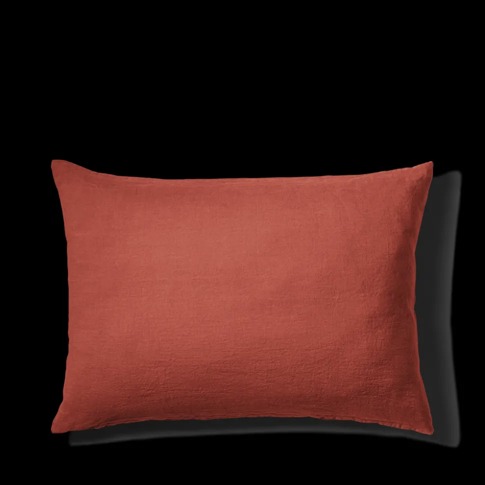 200 LINTEX Taies D’oreiller-Taie d'oreiller en lin lavé – Rouge Bourbon