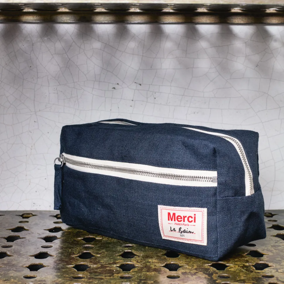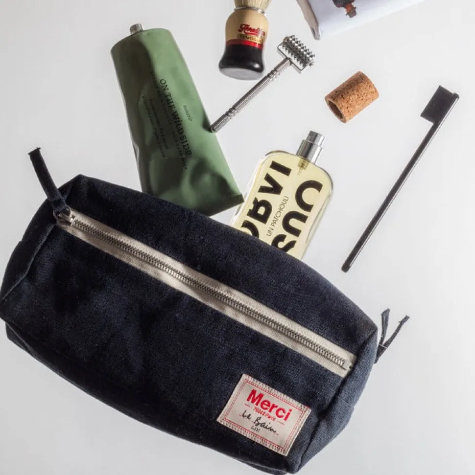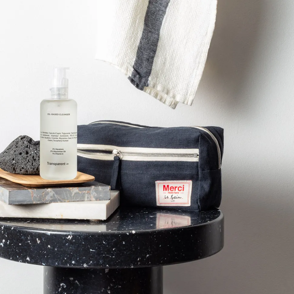 Merci étoffe sa collection Bain et dévoile sa toute première trousse de toilette. Conçue dans le lin lavé iconique et déclinée dans 5 coloris chers à Merci.