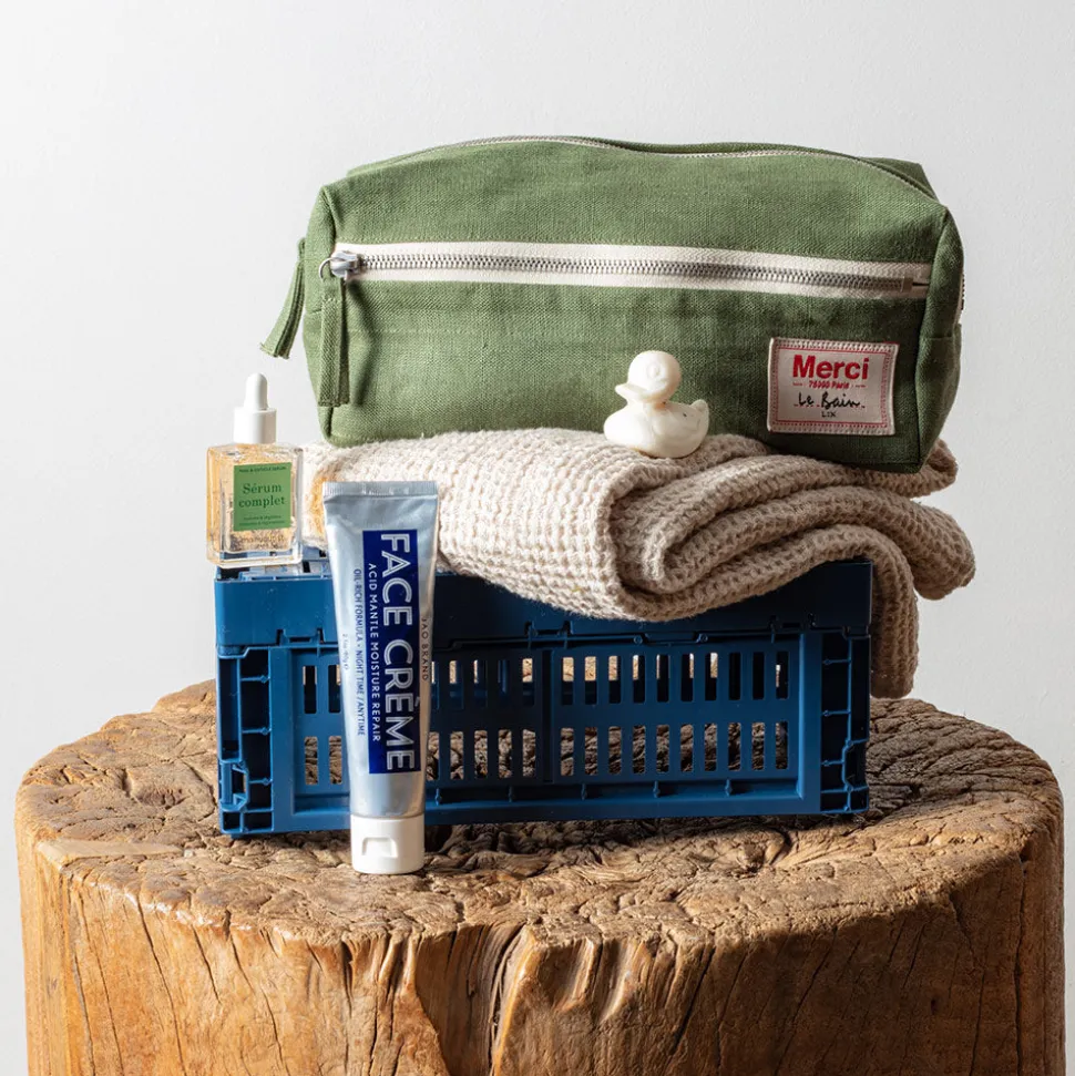 Merci étoffe sa collection Bain et dévoile sa toute première trousse de toilette. Conçue dans le lin lavé iconique et déclinée dans 5 coloris chers à Merci.