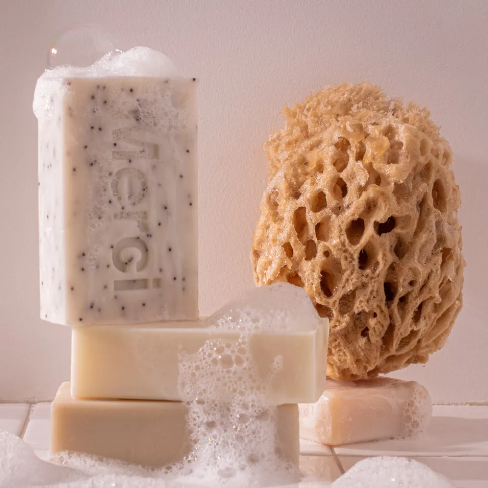 Un pain de savon végétal délicatement parfumé, qui n’assèche pas la peau.