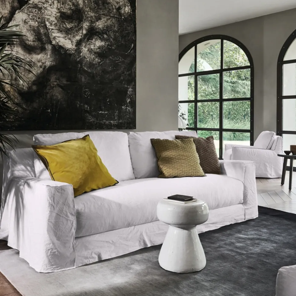 Gervasoni est une marque italienne de mobilier contemporain réputée pour son élégance et son innovation, privilégiant des matériaux durables pour une esthétique intemporelle. La structure des canapés Loll est en bois massif et comporte une coque en mousse de polyuréthane.