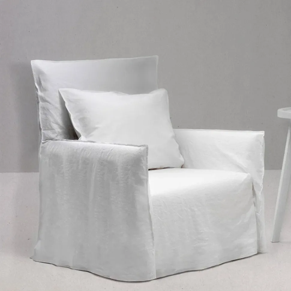 Gervasoni est une marque italienne de mobilier contemporain réputée pour son élégance et son innovation, privilégiant des matériaux durables pour une esthétique intemporelle. Plus petit que le Ghost 01 le fauteuil Ghost 05 se distingue par sa forme menue, tout en conservant l’élégance de la collection.