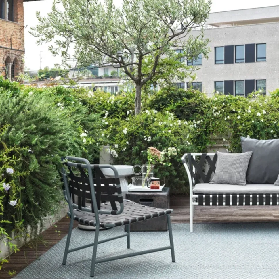 Meuble enveloppant à l’assise large et au dossier légèrement incurvé, la chaise lounge Inout 856 est basée sur une structure légère en tube d’aluminium laqué gaufré, matériau écologique aux qualités techniques uniques.