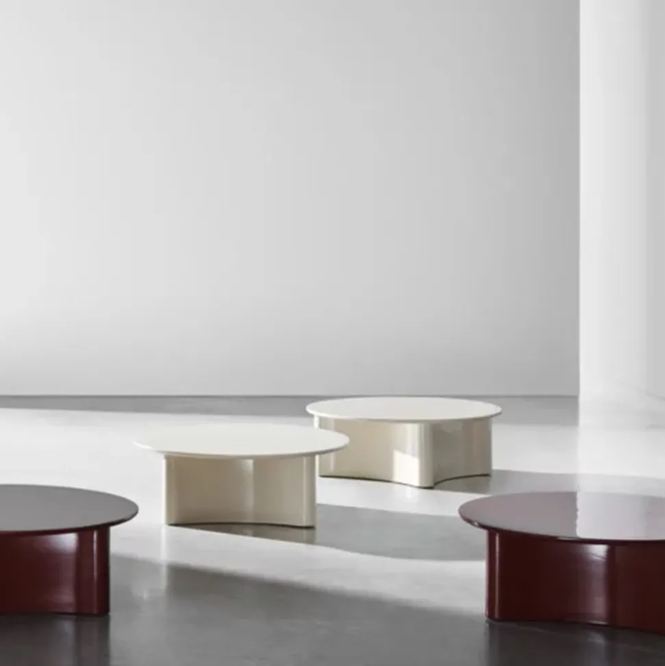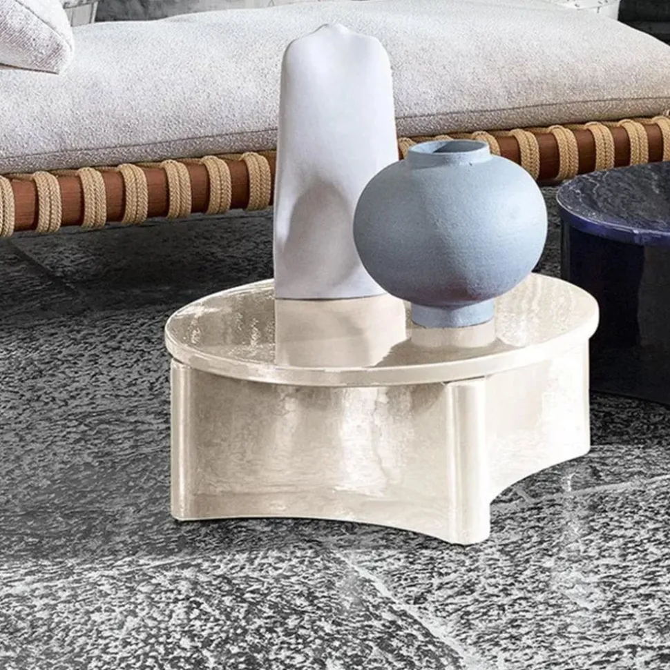 Tables basses avec leur plateau rond et leur base sculpturale en Millgres
