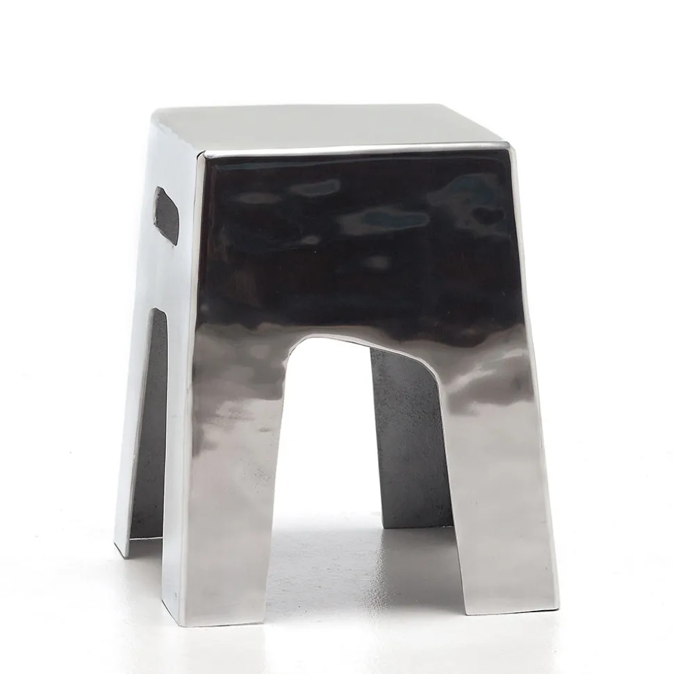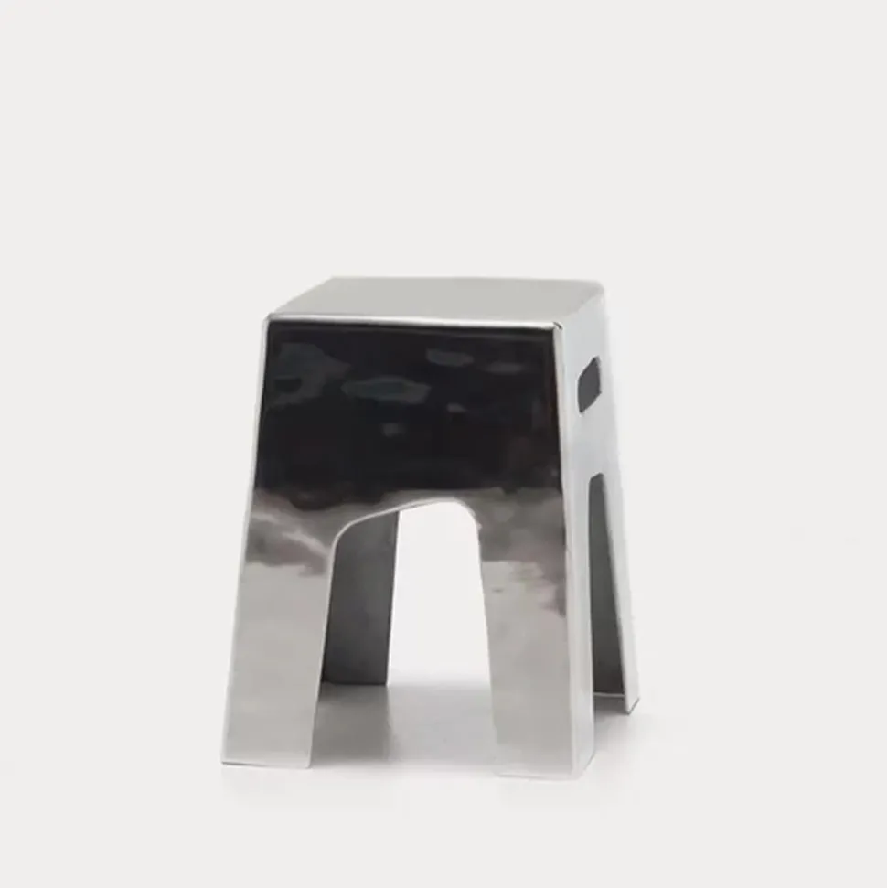 Famille de tables basses en aluminium réalisées en deux tailles différentes, les Inout 45/46 ont une forme rectangulaire et se distinguent par une finition particulière en aluminium qui crée un effet de miroitement, par lequel la lumière se reflète sur les surfaces pour engendrer des suggestions toujours différentes