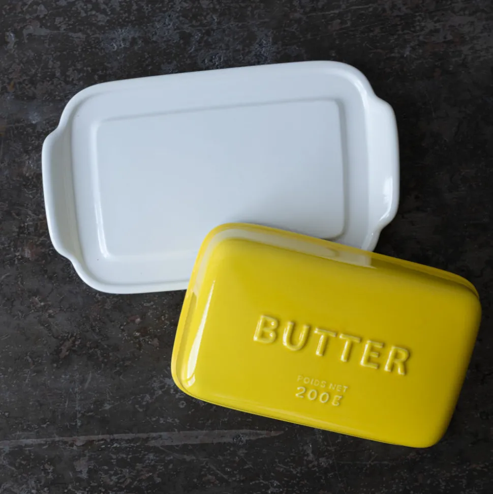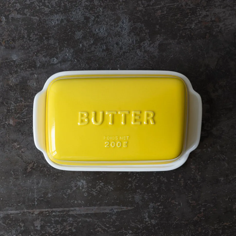 Beurrier arrondi jaune designIdéal pour sublimer vos tables en toute simplicitéEntretien: Passe au lave-vaisselle