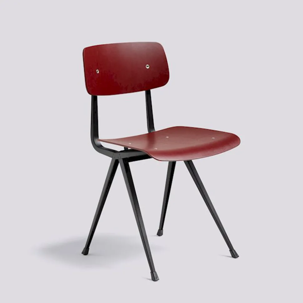 La chaise Result se compose d’une fine base en tôle d’acier et d’une assise et d’un dossier en chêne, ce qui lui confère un maximum de flexibilité, de légèreté et de solidité