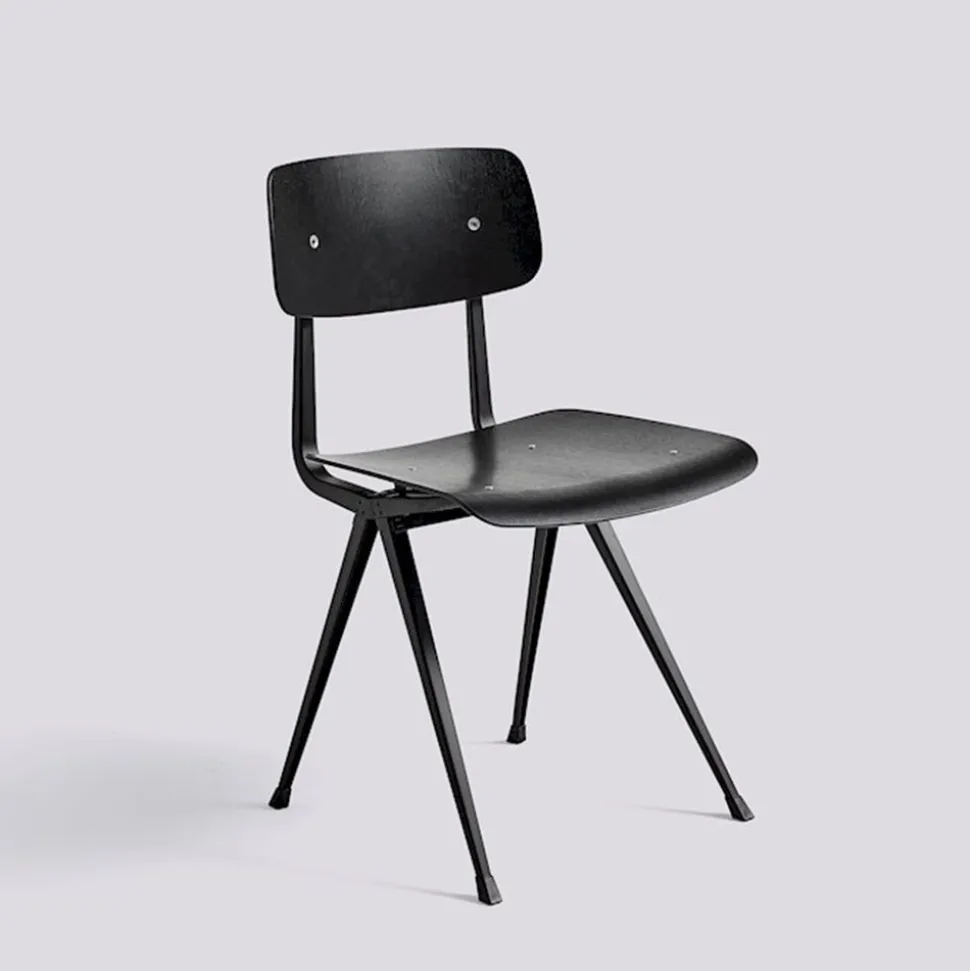 La chaise Result se compose d’une fine base en tôle d’acier et d’une assise et d’un dossier en chêne, ce qui lui confère un maximum de flexibilité, de légèreté et de solidité