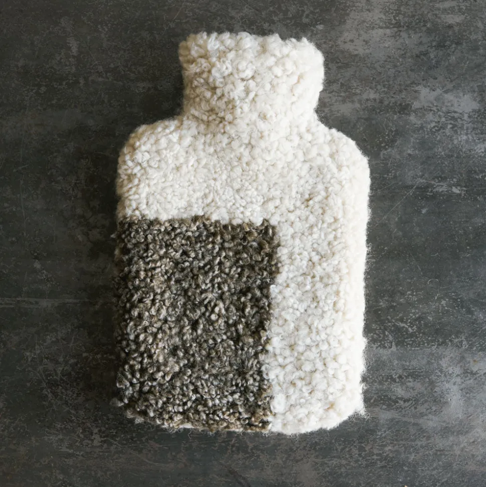Bouillotte en caoutchouc de latex naturel recouverte d’une housse en peau de mouton de Nouvelle Zélande