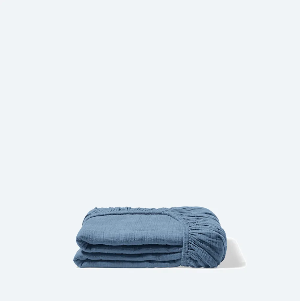 2100 GAZEX Draps Housse-Drap-housse en gaze de coton – Bleu Zinc