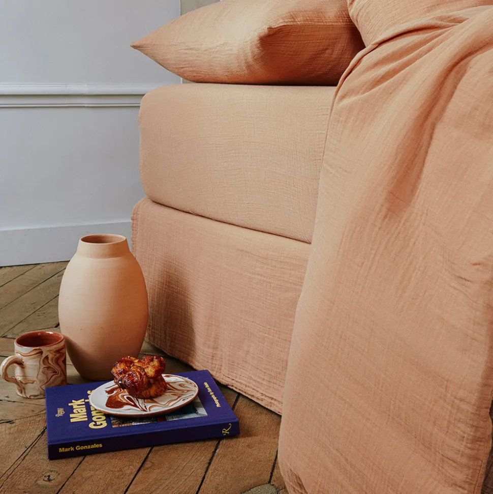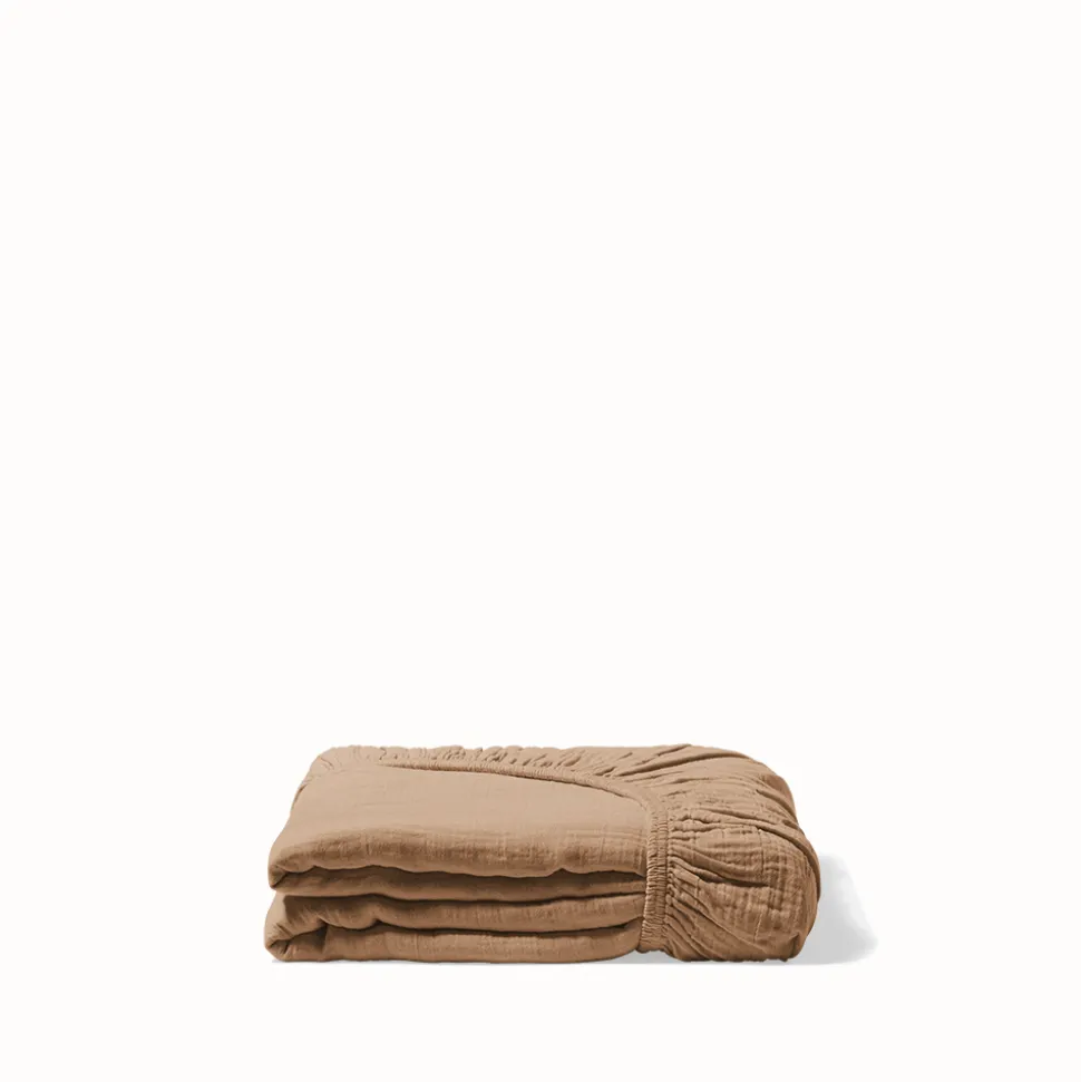2100 GAZEX Draps Housse-Drap-housse en gaze de coton – Brun Haussmann