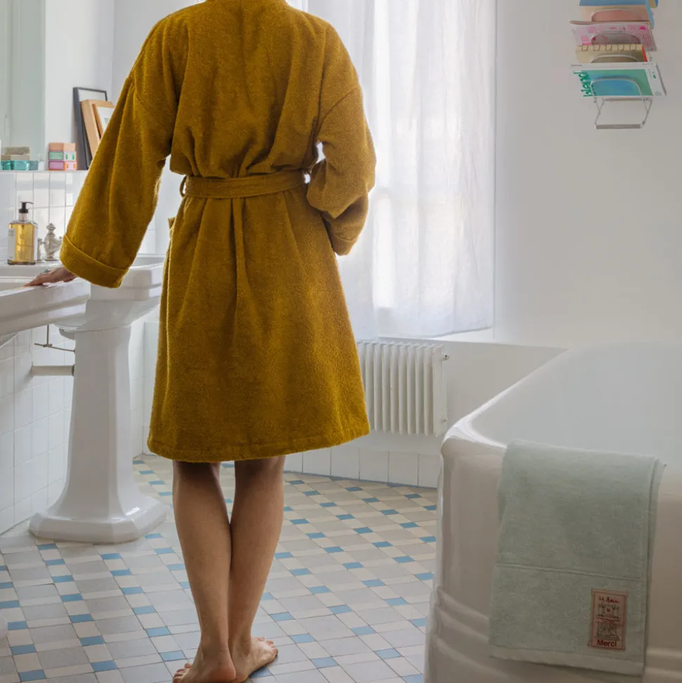 Merci revisite ses classiques du bain en une toute nouvelle matière : l’éponge. Faite en 100% coton, cette gamme de l…