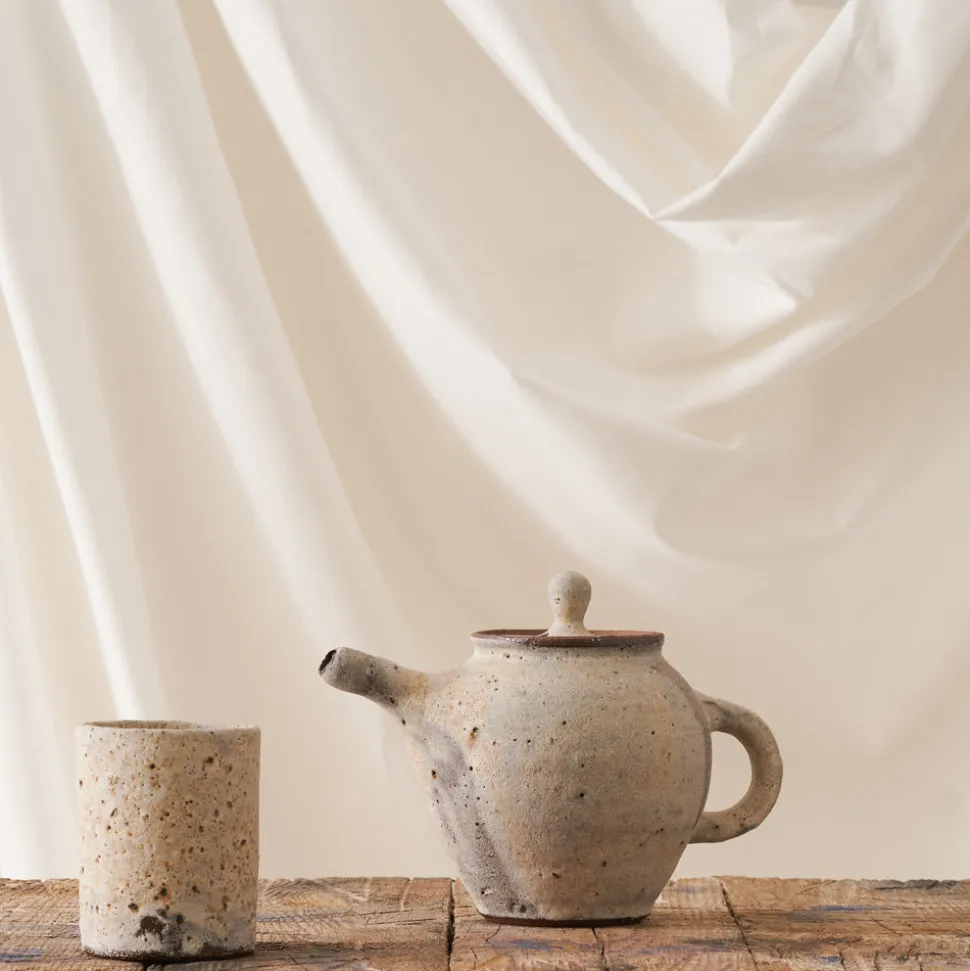Benoit Audureau aime travailler avec une terre brute, non dénaturée, provenant de briqueteries ou de poteries locales. Après la cuisson, ces terres révèlent toutes leurs imperfections naturelles. Chaque pièce est recouverte d’un émail blanc magnésien et cuite au four électrique à 1270°C. Avec le temps, selon la terre utilisée, l’émail dévoilera des nuances de gris, de bleu ou de vert.
