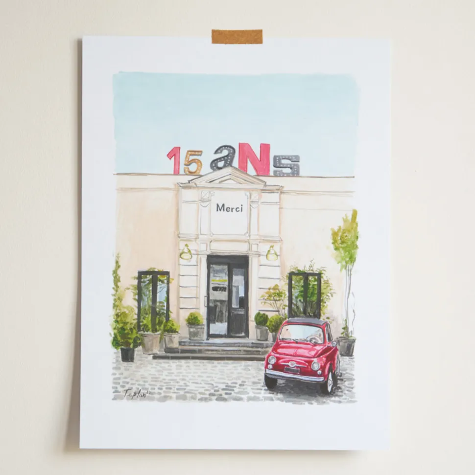 Originaire de Slovaquie, Ján a passé les 18 dernières années à Londres avant d’entamer récemment un nouveau chapitre à Paris. Architecte qualifié et artiste polyvalent, son parcours créatif a été varié, allant de la peinture et des fresques à l’art numérique. Inspiré par les voyages, la nature et les nuances de la vie quotidienne, Ján imprègne ses créations d’émerveillement et d’authenticité. Son style distinctif et son approche imaginative lui ont permis de collaborer avec de nombreuses marques prestigieuses.Aujourd’hui, c’est chez Merci que Ján décide de partager son art. Des iconiques totes bag à la terrasse du Used Book, tout l’univers de Merci est décliné à travers ces douze illustrations.