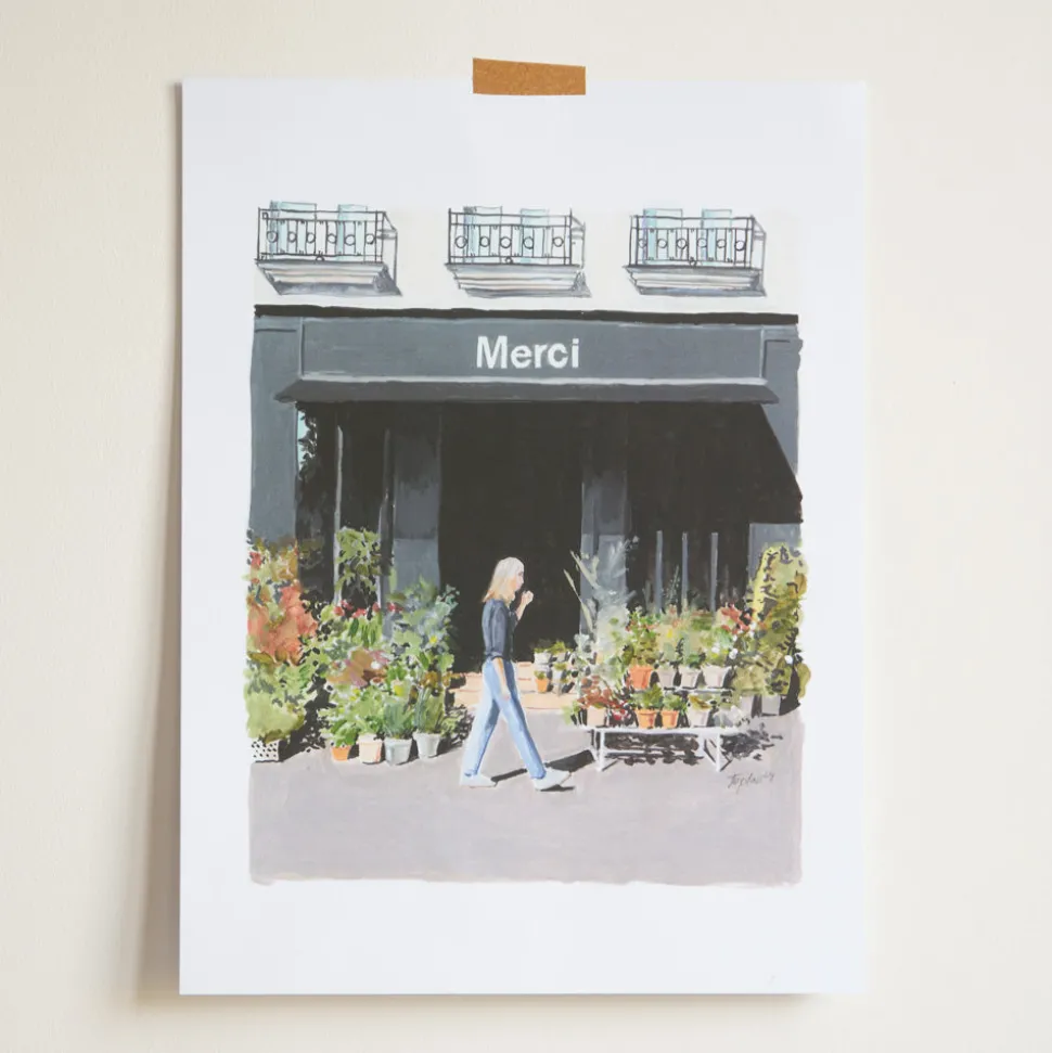 Originaire de Slovaquie, Ján a passé les 18 dernières années à Londres avant d’entamer récemment un nouveau chapitre à Paris. Architecte qualifié et artiste polyvalent, son parcours créatif a été varié, allant de la peinture et des fresques à l’art numérique. Inspiré par les voyages, la nature et les nuances de la vie quotidienne, Ján imprègne ses créations d’émerveillement et d’authenticité. Son style distinctif et son approche imaginative lui ont permis de collaborer avec de nombreuses marques prestigieuses.Aujourd’hui, c’est chez Merci que Ján décide de partager son art. Des iconiques totes bag à la terrasse du Used Book, tout l’univers de Merci est décliné à travers ces douze illustrations.