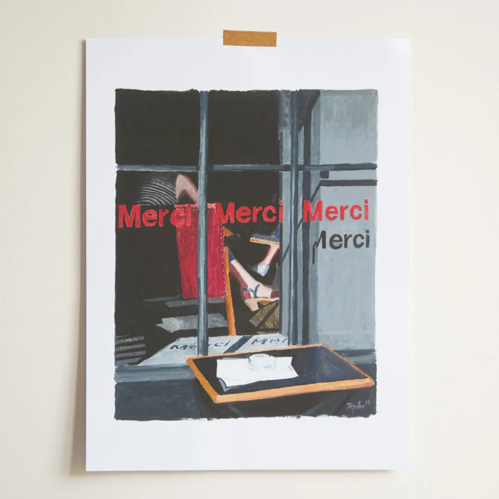 Originaire de Slovaquie, Ján a passé les 18 dernières années à Londres avant d’entamer récemment un nouveau chapitre à Paris. Architecte qualifié et artiste polyvalent, son parcours créatif a été varié, allant de la peinture et des fresques à l’art numérique. Inspiré par les voyages, la nature et les nuances de la vie quotidienne, Ján imprègne ses créations d’émerveillement et d’authenticité. Son style distinctif et son approche imaginative lui ont permis de collaborer avec de nombreuses marques prestigieuses.Aujourd’hui, c’est chez Merci que Ján décide de partager son art. Des iconiques totes bag à la terrasse du Used Book, tout l’univers de Merci est décliné à travers ces douze illustrations.