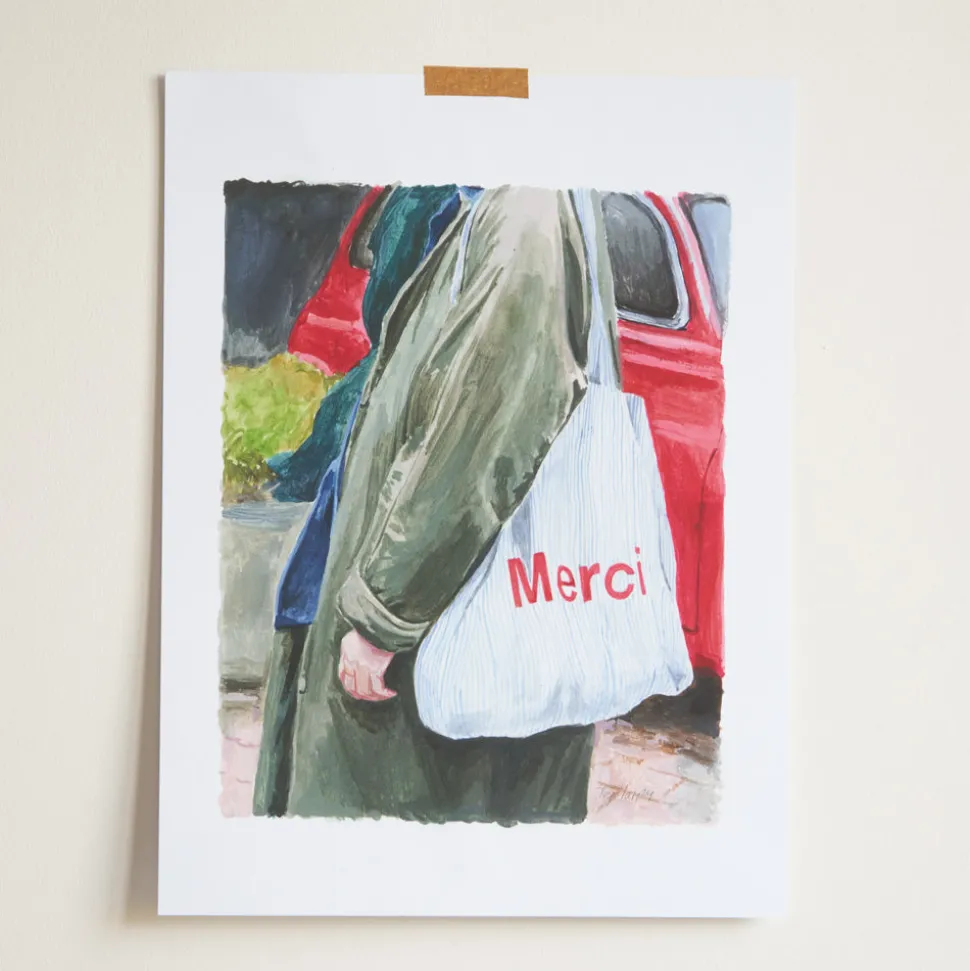 Originaire de Slovaquie, Ján a passé les 18 dernières années à Londres avant d’entamer récemment un nouveau chapitre à Paris. Architecte qualifié et artiste polyvalent, son parcours créatif a été varié, allant de la peinture et des fresques à l’art numérique. Inspiré par les voyages, la nature et les nuances de la vie quotidienne, Ján imprègne ses créations d’émerveillement et d’authenticité. Son style distinctif et son approche imaginative lui ont permis de collaborer avec de nombreuses marques prestigieuses.Aujourd’hui, c’est chez Merci que Ján décide de partager son art. Des iconiques totes bag à la terrasse du Used Book, tout l’univers de Merci est décliné à travers ces douze illustrations.