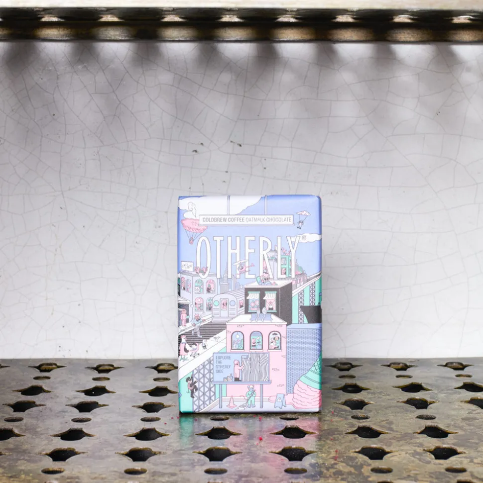 Otherly est une marque de chocolat innovante qui se démarque par son utilisation de lait d’avoine plutôt que de lait de vache dans ses créations. Fondée sur la célébration des différences et de l’originalité, Otherly encourage chacun à embrasser sa singularité. La marque a créé un univers fantaisiste peuplé de personnages uniques, illustré par l’artiste Tomi Um, qui incarne sa philosophie de l’acceptation et de la créativité sans limites.