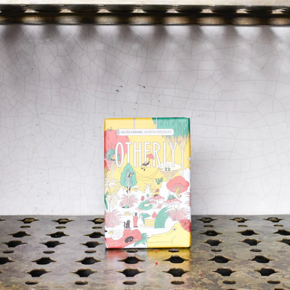 Otherly est une marque de chocolat innovante qui se démarque par son utilisation de lait d’avoine plutôt que de lait de vache dans ses créations. Fondée sur la célébration des différences et de l’originalité, Otherly encourage chacun à embrasser sa singularité. La marque a créé un univers fantaisiste peuplé de personnages uniques, illustré par l’artiste Tomi Um, qui incarne sa philosophie de l’acceptation et de la créativité sans limites.