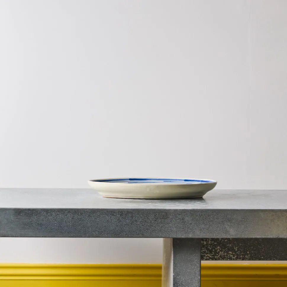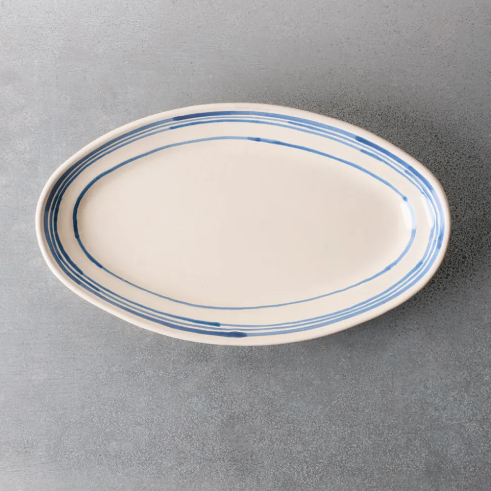 Plat ovale en faïence ligne bleu, pièce unique imaginée par le céramiste italien Nicola Fasano