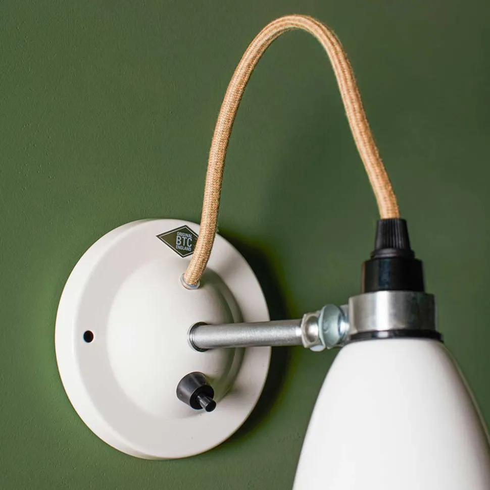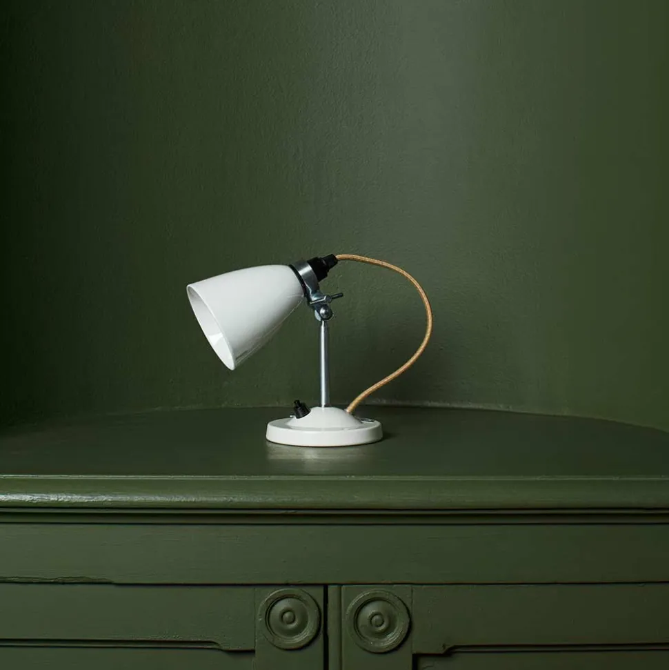 Tige en laiton finition satinée sur un socle dôme en porcelaine avec interrupteur noir
