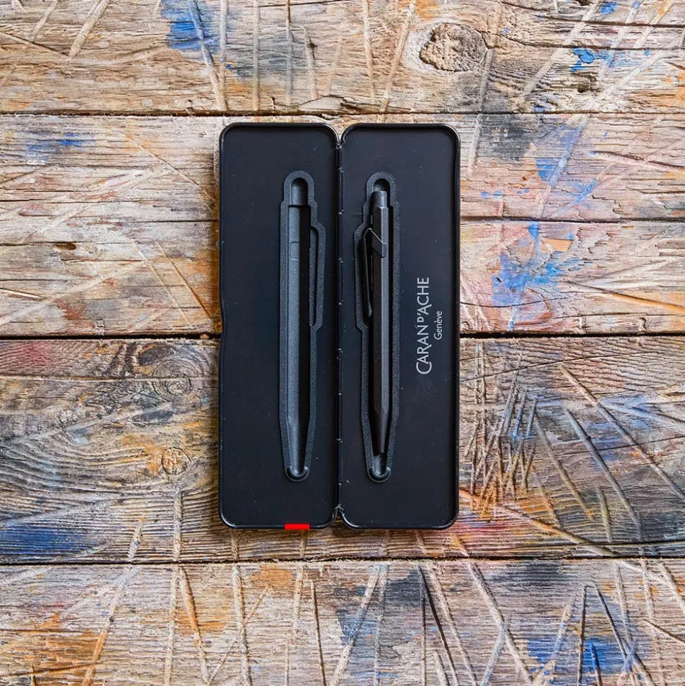 252 CARAN D ACHE Écriture-Stylo bille avec étui – Noir – Caran d'Ache