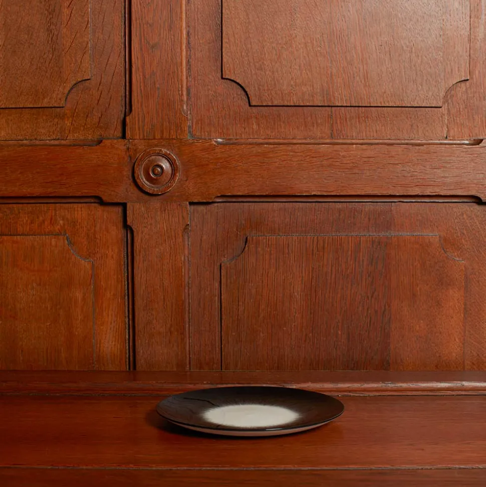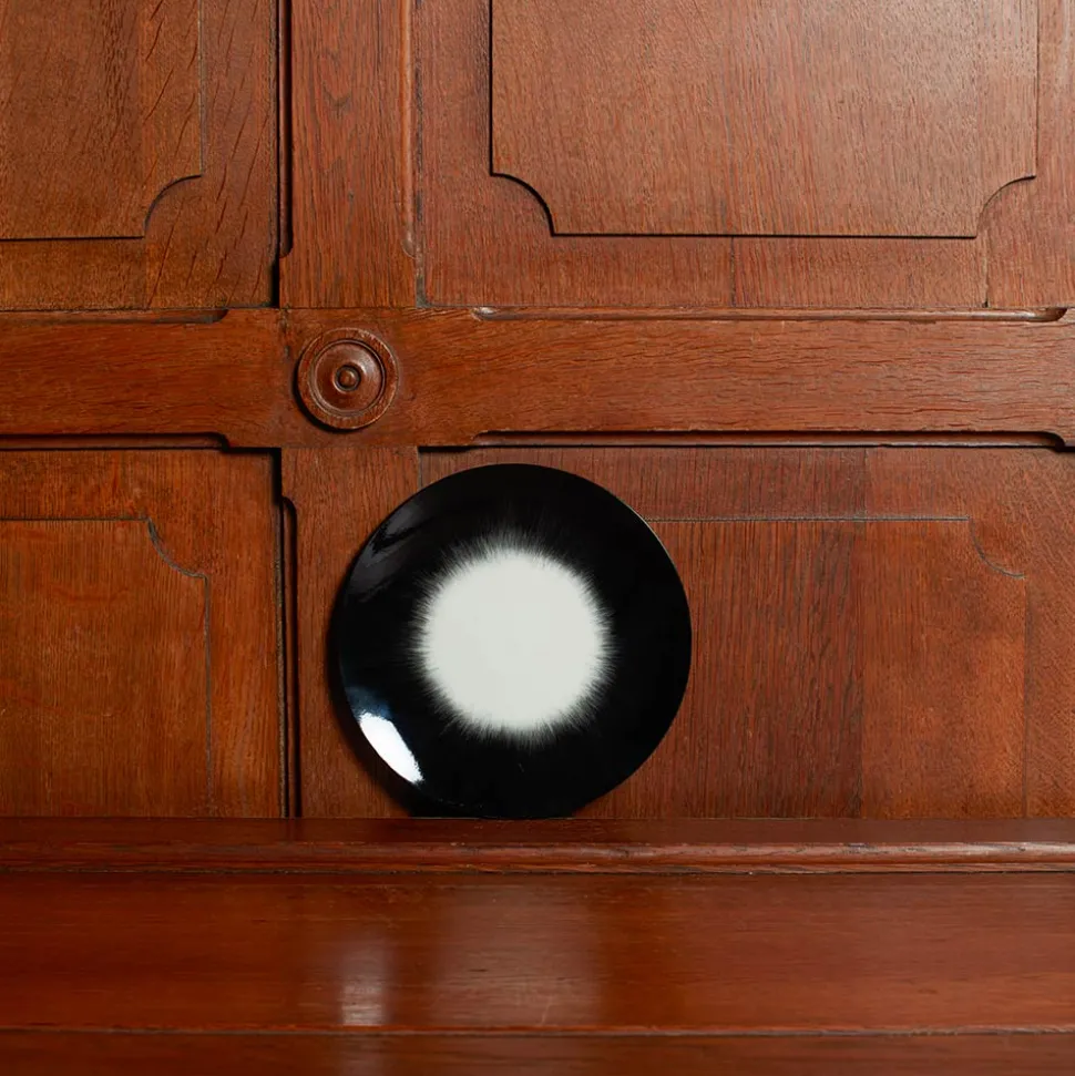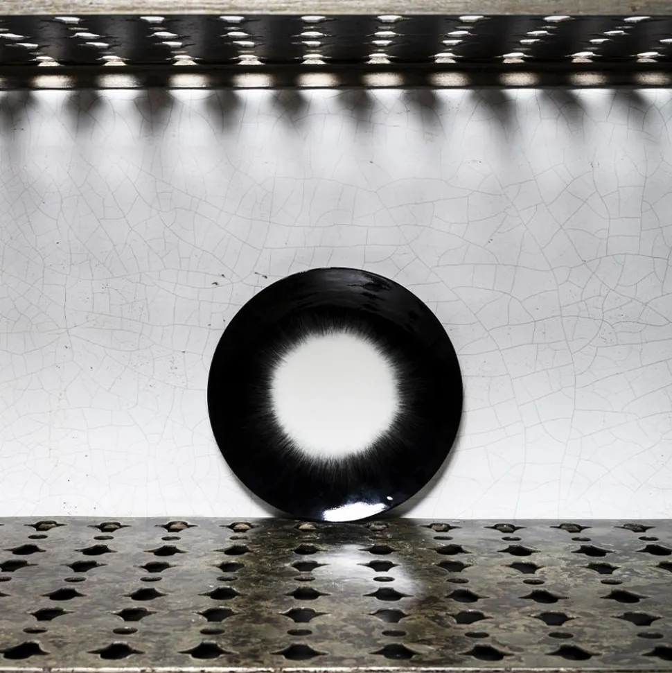 Assiette en porcelaine de la collection With Dé, de Ann Demeulemeester, présentant des jeux d’ombres et de lumière grâce à un dégradé en plusieurs couches
