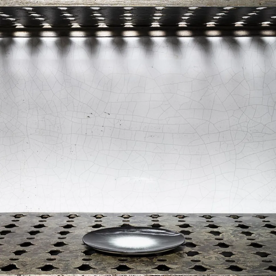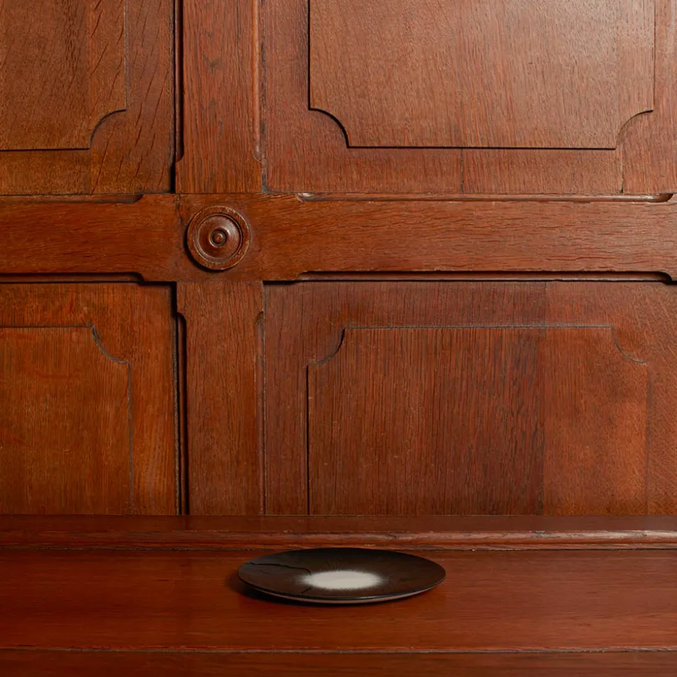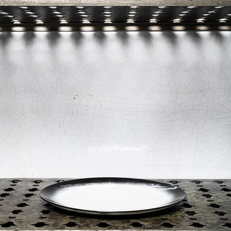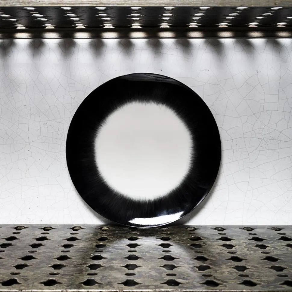 Assiette en porcelaine de la collection With Dé, de Ann Demeulemeester, présentant des jeux d’ombres et de lumière grâce à un dégradé en plusieurs couches