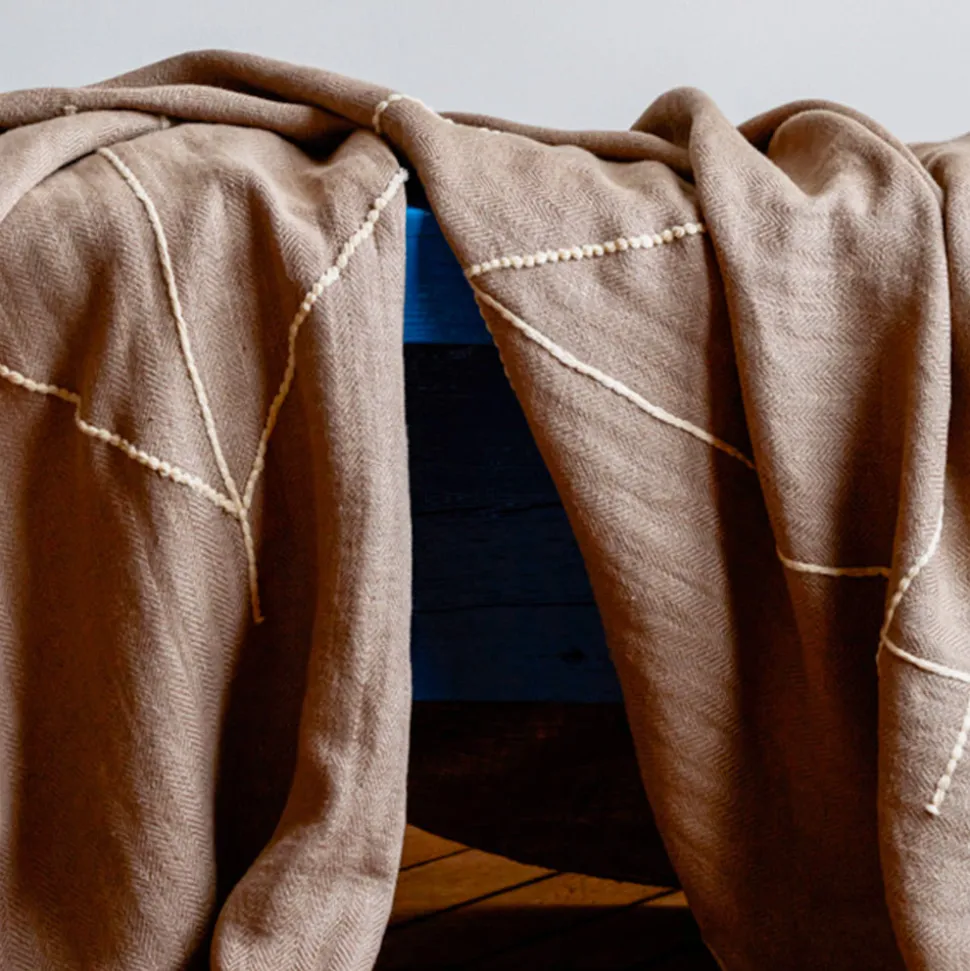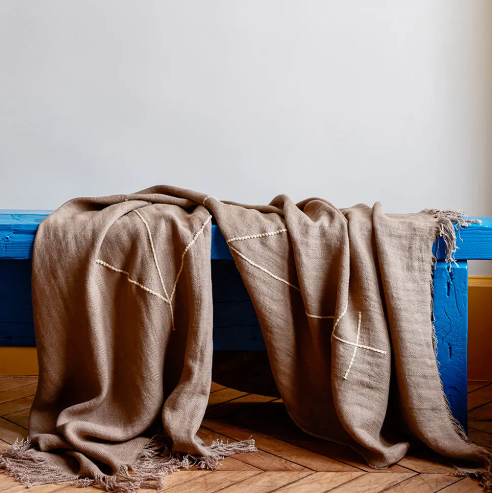 Superbe plaid en 100% lin chevron brodé à la main par Bed u0026amp; Philosophy