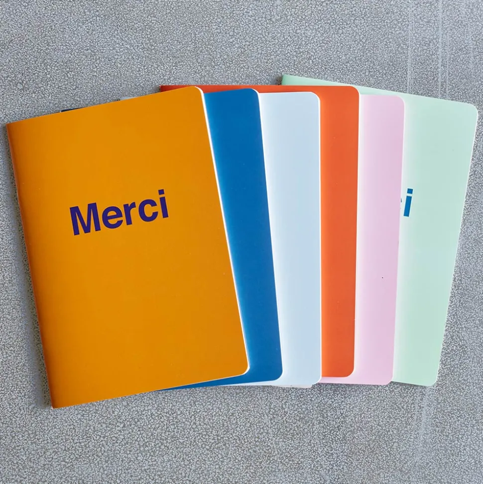 Merci a imaginé un carnet à son image : pratique, transportable partout, qui va droit à l’essentiel Disponible dans u…