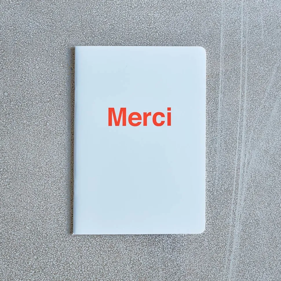 Merci a imaginé un carnet à son image : pratique, transportable partout, qui va droit à l’essentiel