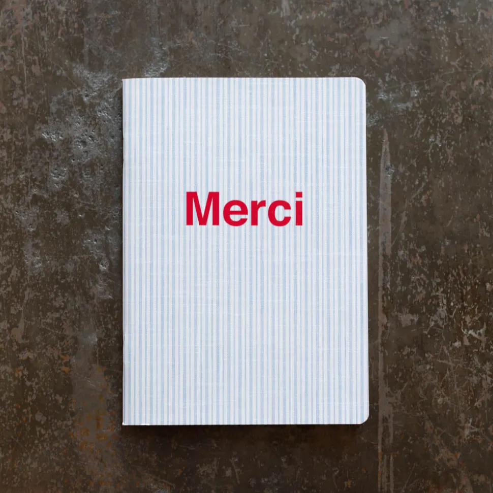 Merci a imaginé un carnet à son image : pratique, transportable partout, qui va droit à l’essentiel