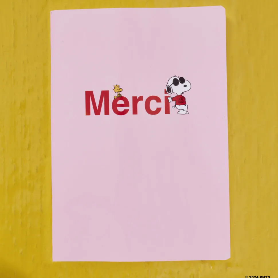 Peanuts x Merci a imaginé un carnet : pratique, transportable partout, qui va droit à l’essentiel