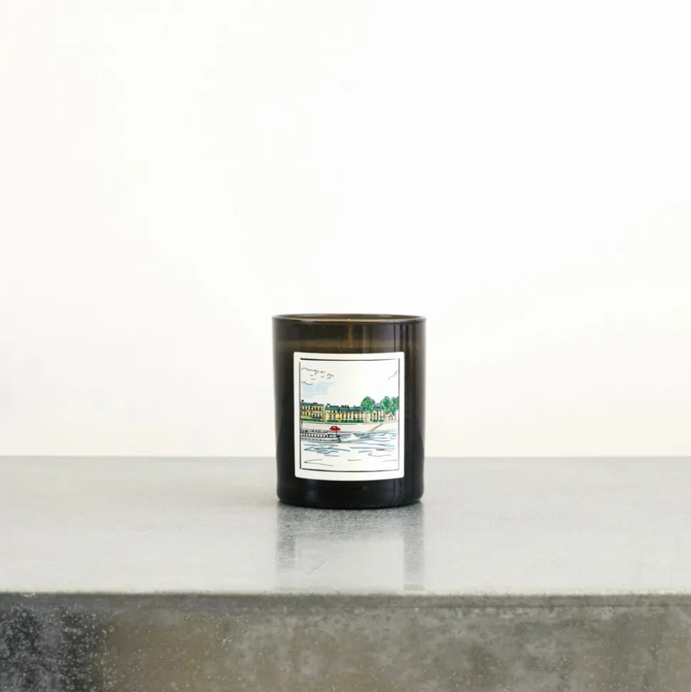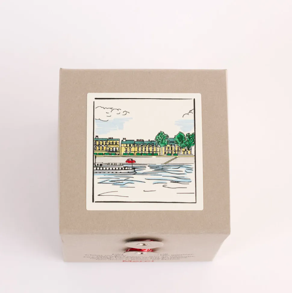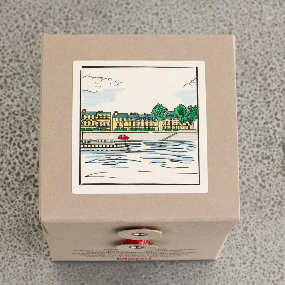 La bougie « Ma maison » est la senteur iconique de Merci. Elle se décline dans trois écrins illustrant des scènes typiques de Paris. Inspirée par l’art de vivre parisien, elle capture l’effervescence, le charme et la douceur de la ville. Fabriquée en France, elle incarne l’essence de Paris avec une élégance simple et naturelle, comme une ode à la ville lumière et à sa beauté unique.
