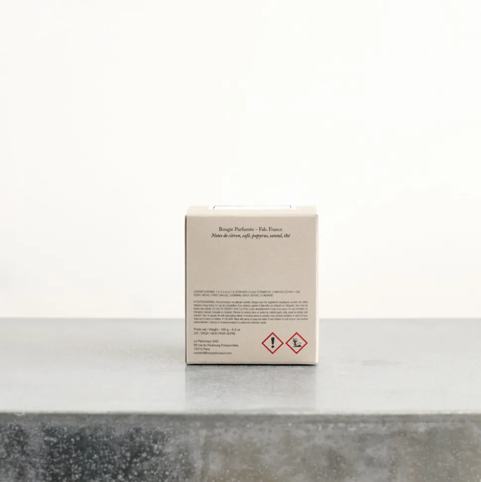 L’ensemble des notes de son parfum a été méticuleusement sélectionné, après de nombreux essais. La fraîcheur du citron, mêlée à l’arôme riche et réconfortant du café, nous transporte instantanément pour nous faire sentir comme chez nous, à la maison. Le papyrus et le santal ajoutent une note boisée et chaleureuse, tandis que le thé apporte une touche apaisante, presque méditative. Une bougie pensée pour être allumée pour tous nos moments de vie, comme une parenthèse après l’agitation de la ville.