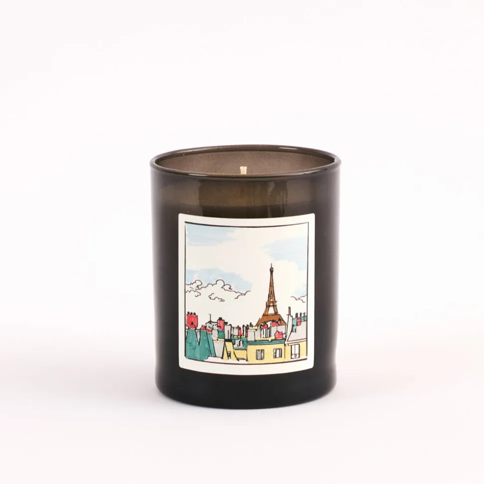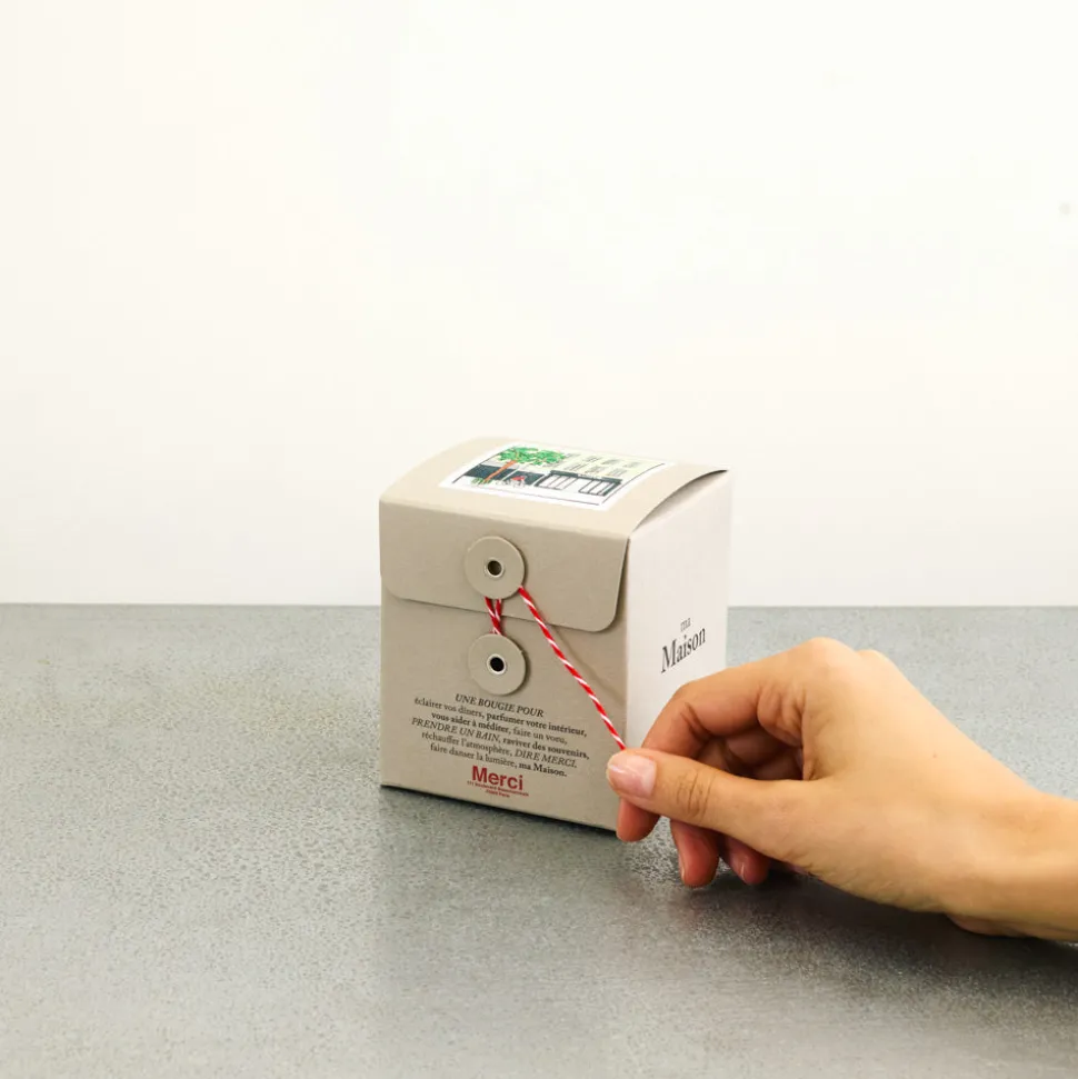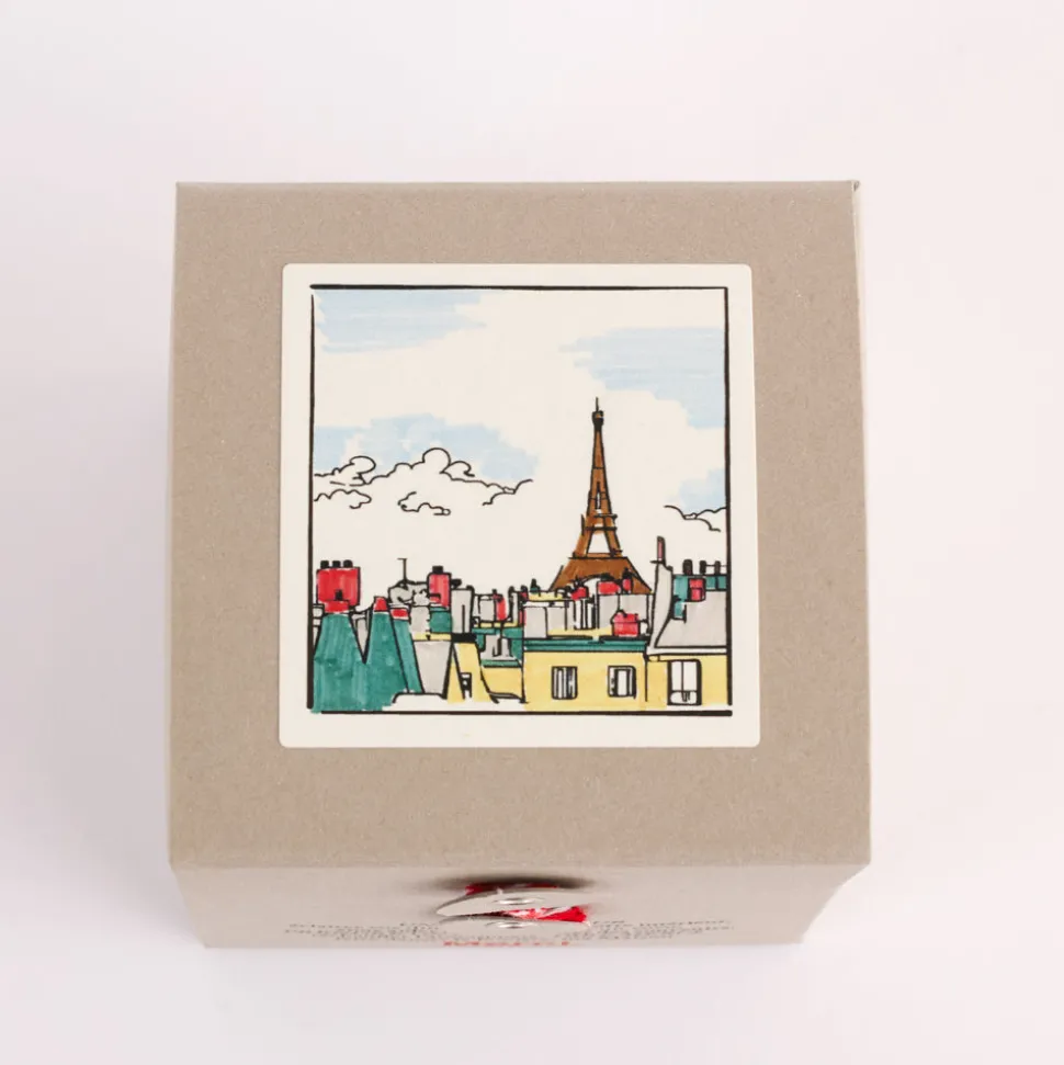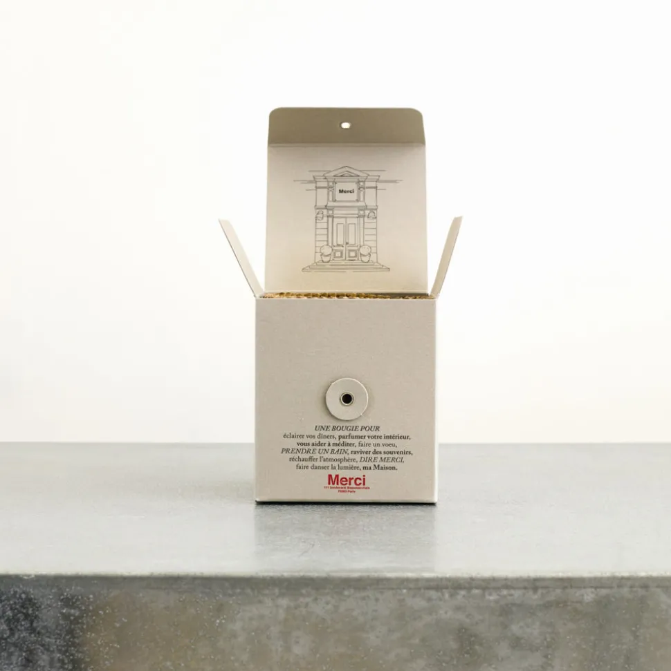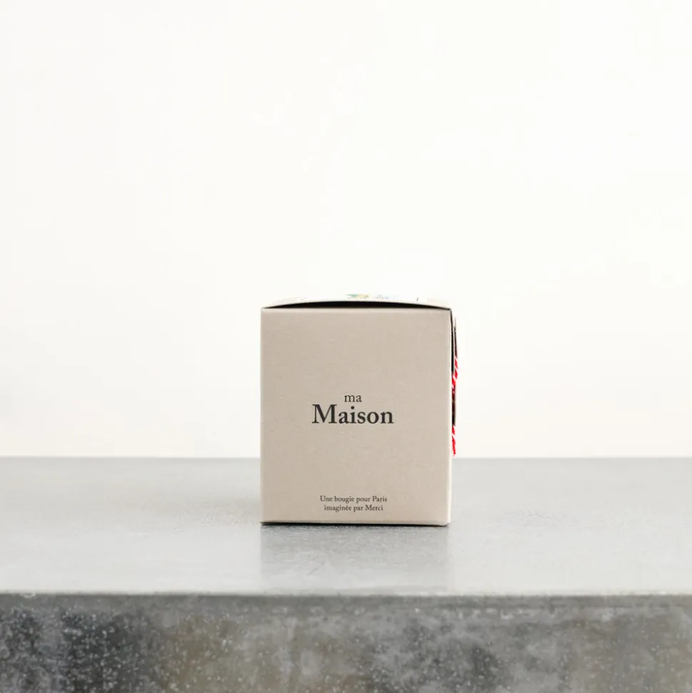 La bougie « Ma maison » est la senteur iconique de Merci. Elle se décline dans trois écrins illustrant des scènes typiques de Paris. Inspirée par l’art de vivre parisien, elle capture l’effervescence, le charme et la douceur de la ville. Fabriquée en France, elle incarne l’essence de Paris avec une élégance simple et naturelle, comme une ode à la ville lumière et à sa beauté unique.